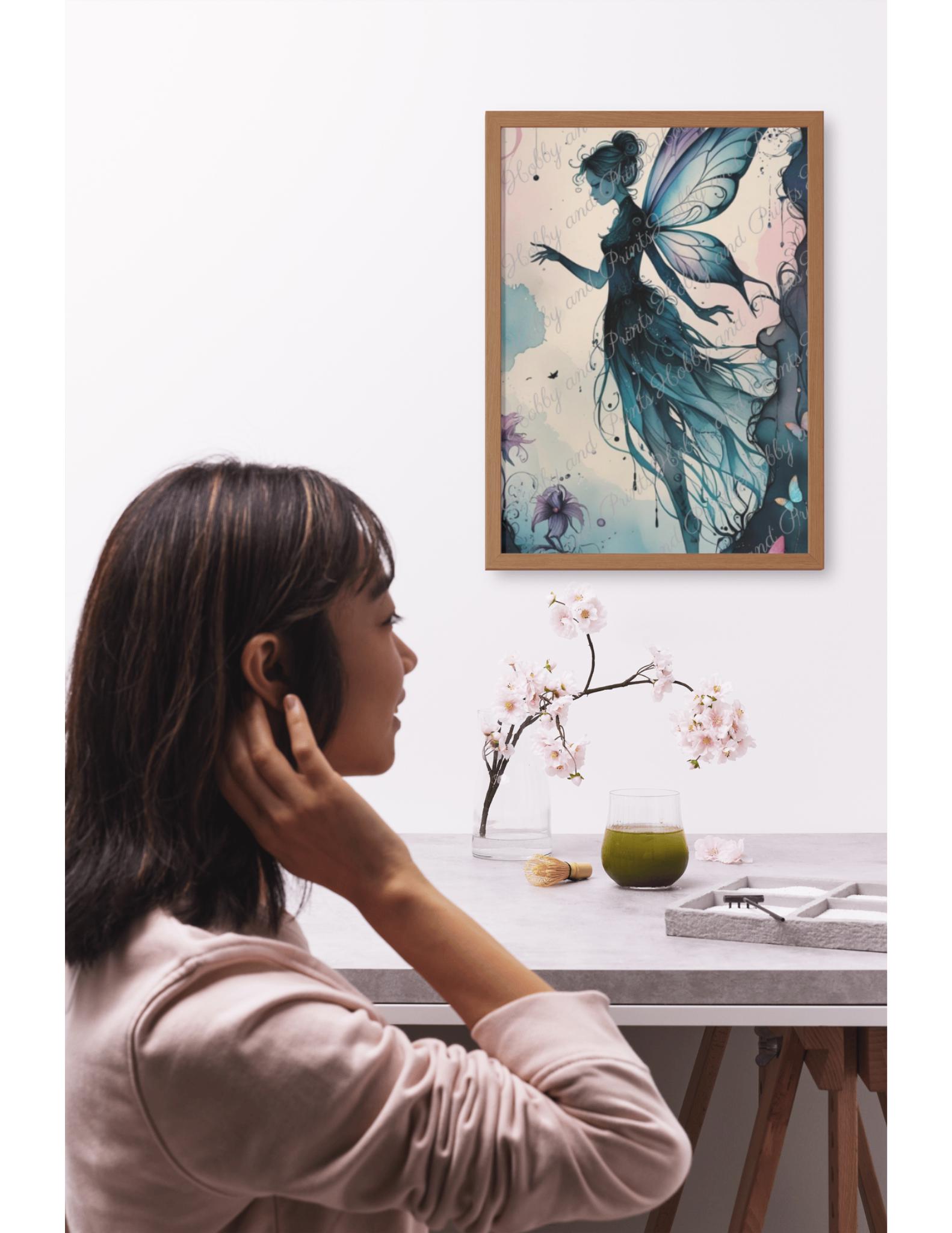 This beautiful diamond painting depicts an elegant fairy with delicate butterfly wings, surrounded by delicate flowers and mysterious colors. The motif exudes magic, grace, and fantasy – a highlight for anyone who loves elves, fairies, and mystical art.