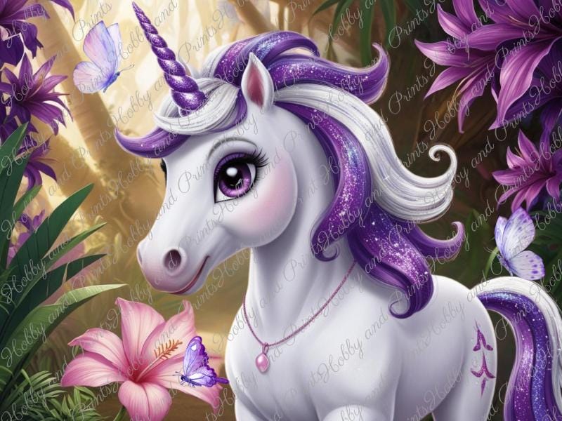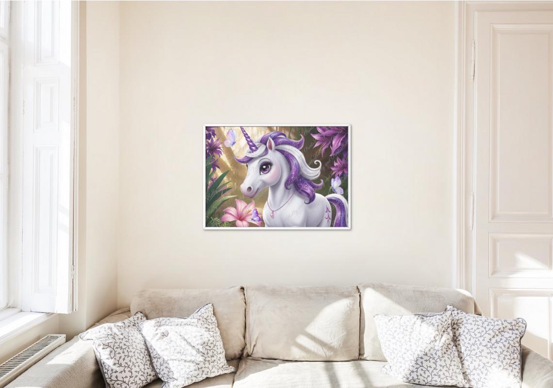 Tauchen Sie ein in die magische Welt der Diamantmalerei! Dieses wunderschöne Einhornmotiv mit lila Horn und passender Mähne ist ein absoluter Hingucker für jedes Zuhause.