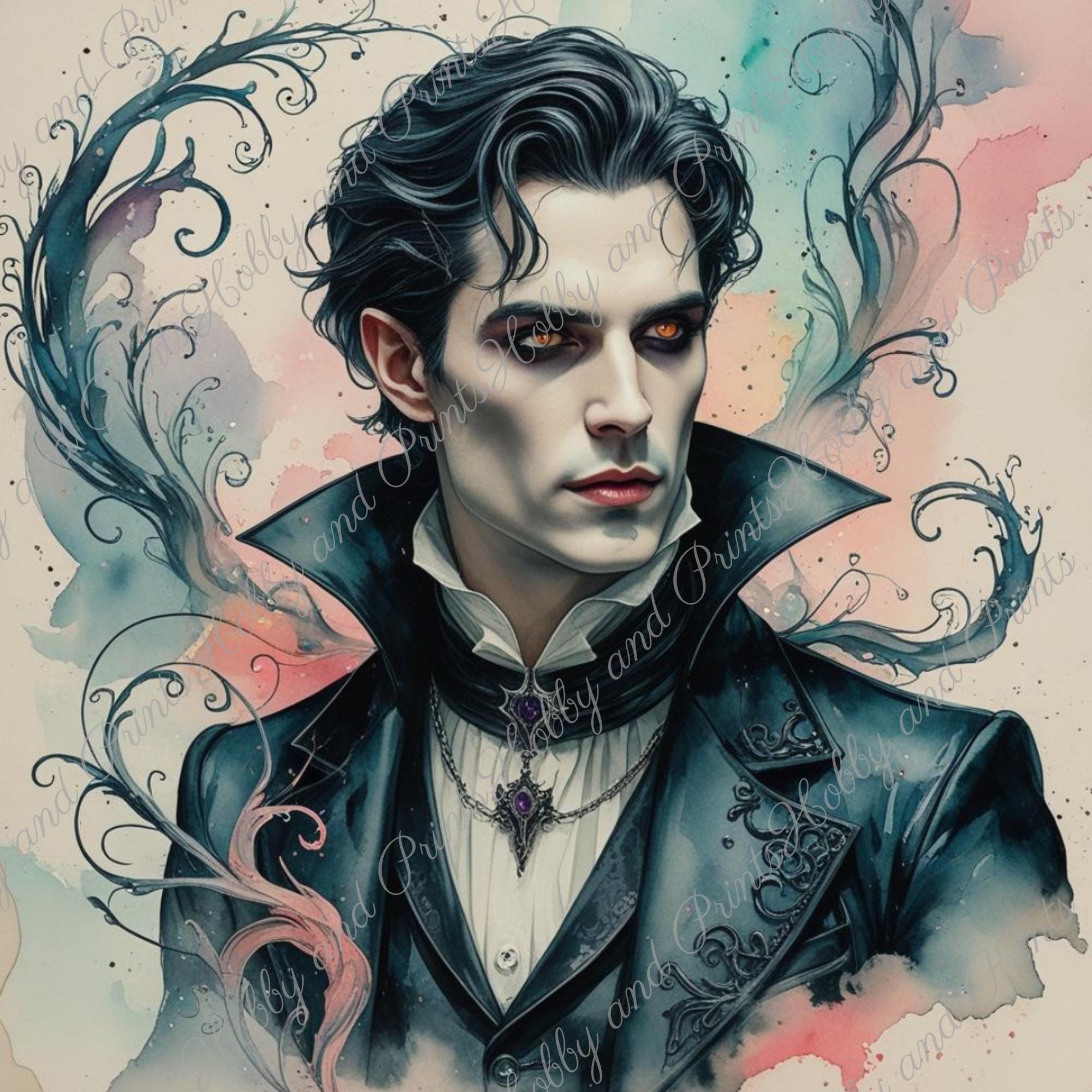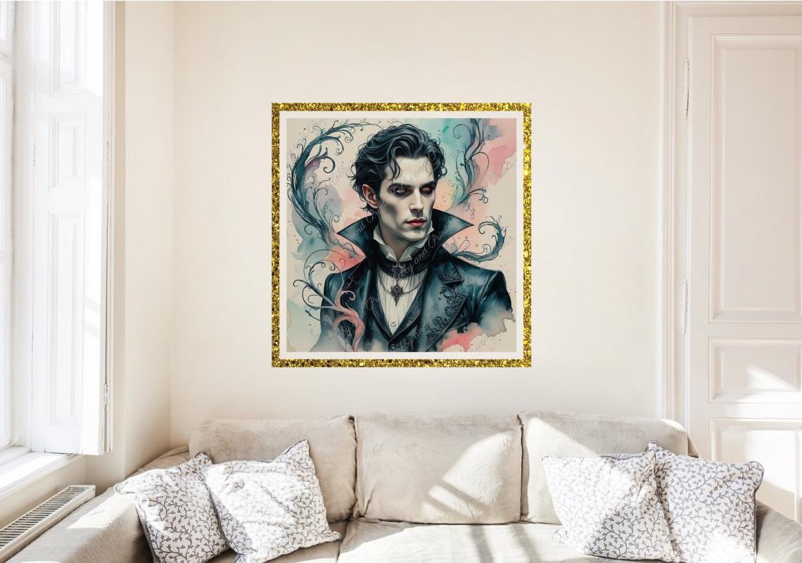 This stunning diamond painting depicts a charismatic vampire/dark count who immediately captivates with his intense gaze, noble robes, and mysterious aura. A picture full of elegance, magic, and a touch of Gothic romance.