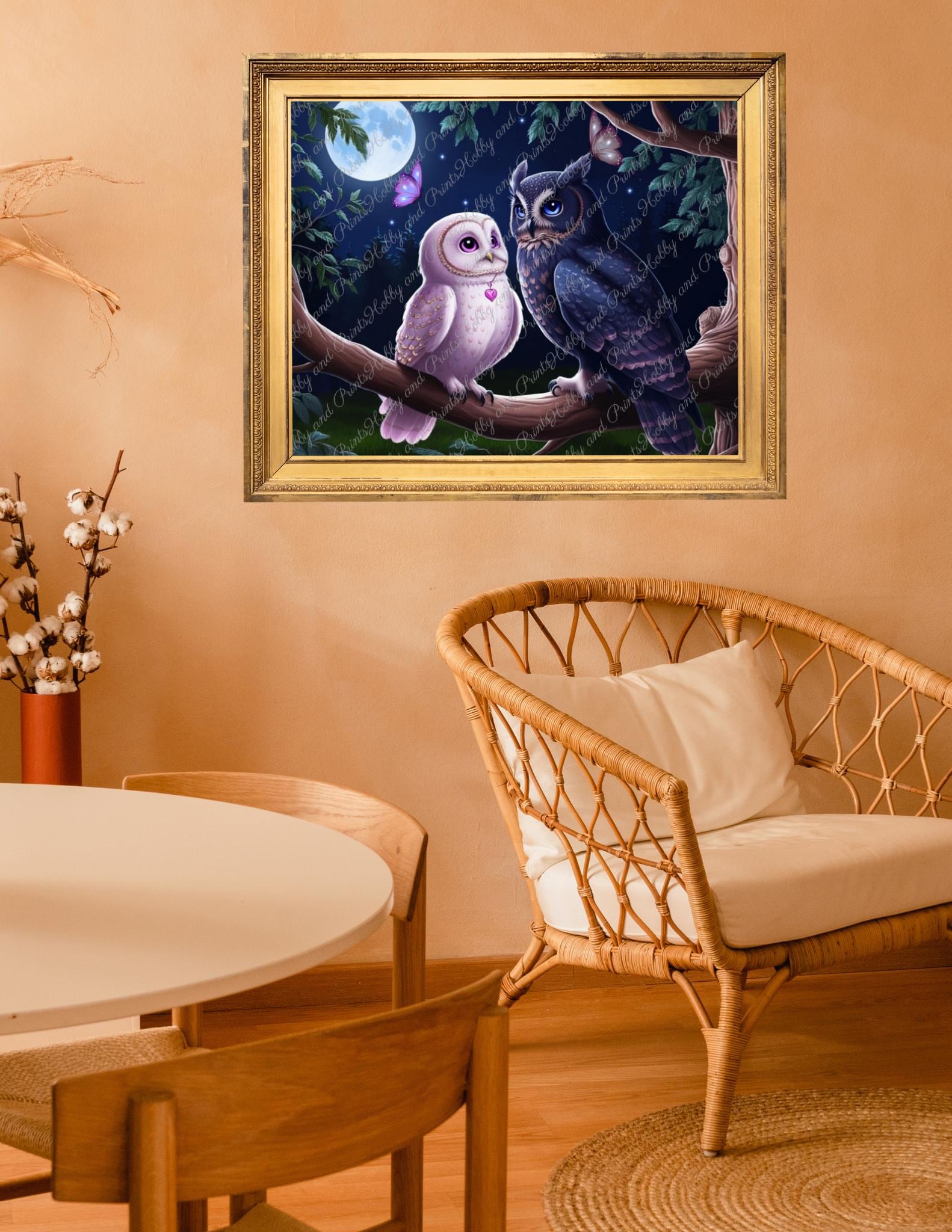 Ein ganz besonderes DIY-Kunstwerk für alle, die Magie und Romantik lieben: Dieses detailreiche Diamantbild mit einem verliebten Eulenpaar in der Nacht bringt nicht nur eine stimmungsvolle Atmosphäre, sondern auch einen leuchtenden Effekt in Ihr Zuhause.