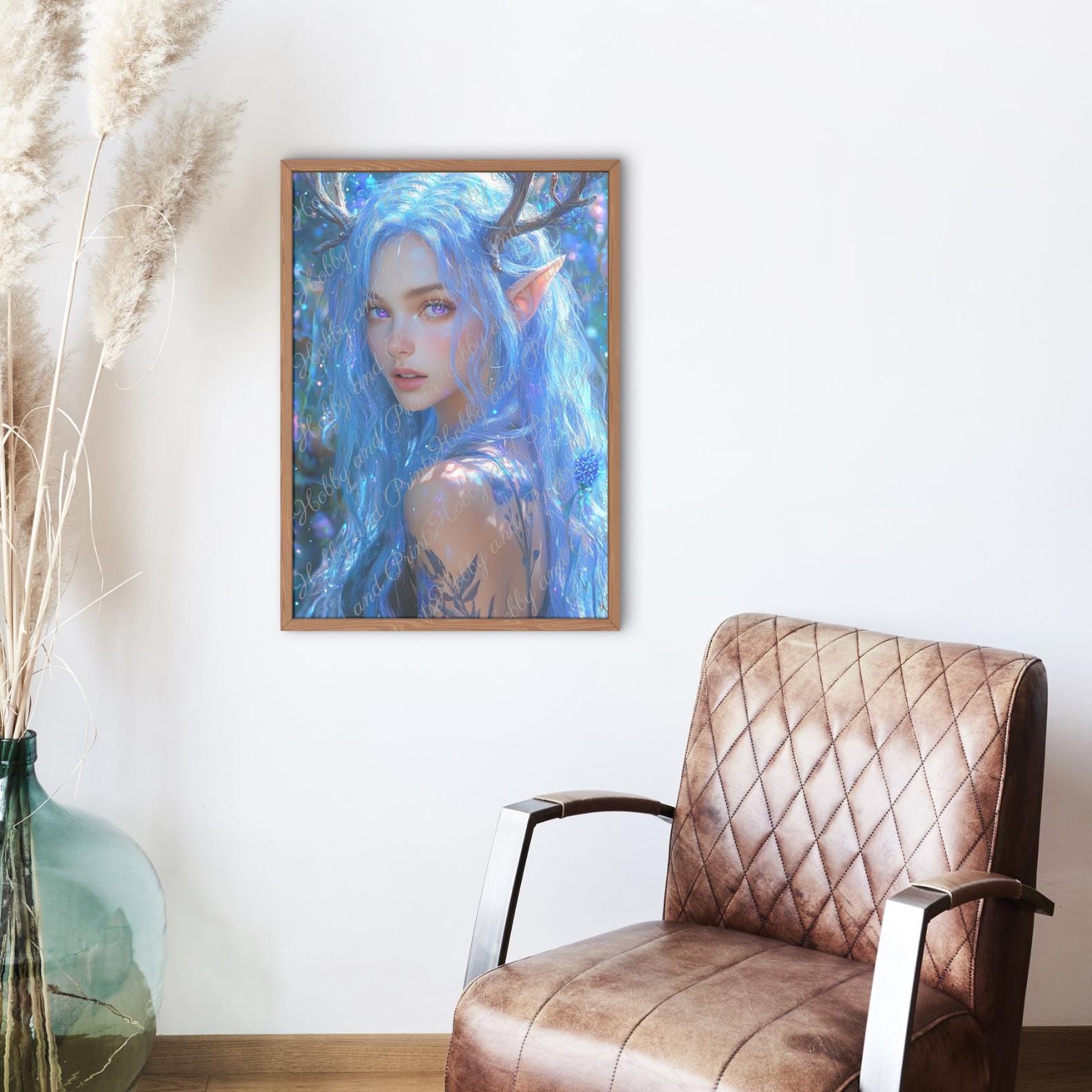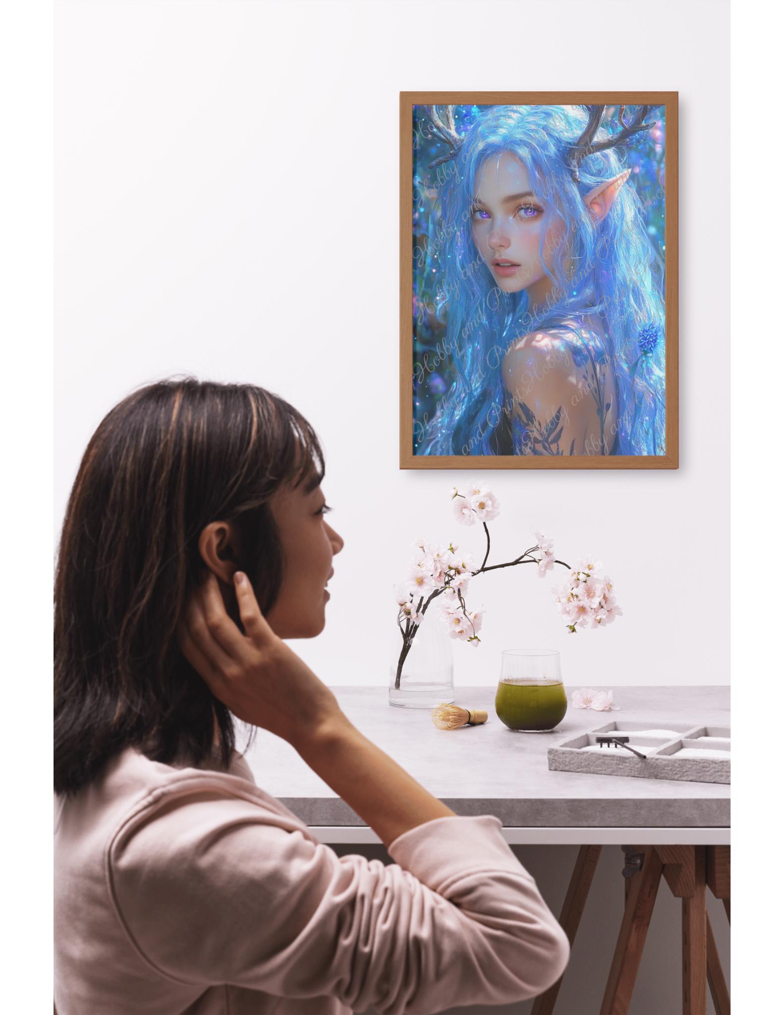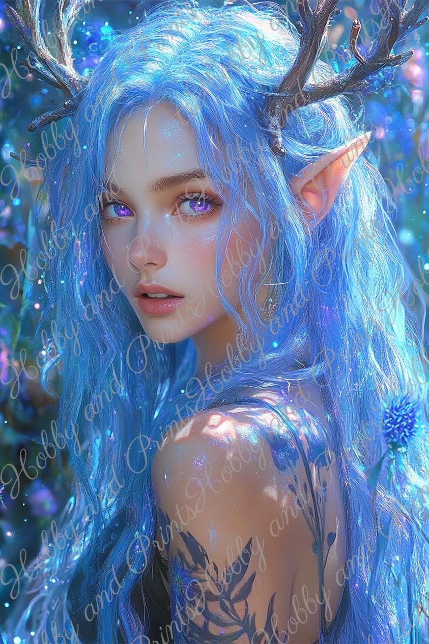 Immerse yourself in the world of fantasy with our extraordinary "Mystical Fairy" diamond painting – a mysterious elf figure with bright blue hair, majestic antlers, and long, pointed ears. This full-frame motif brings magic to your home and is perfect as a relaxing DIY project or creative gift.
