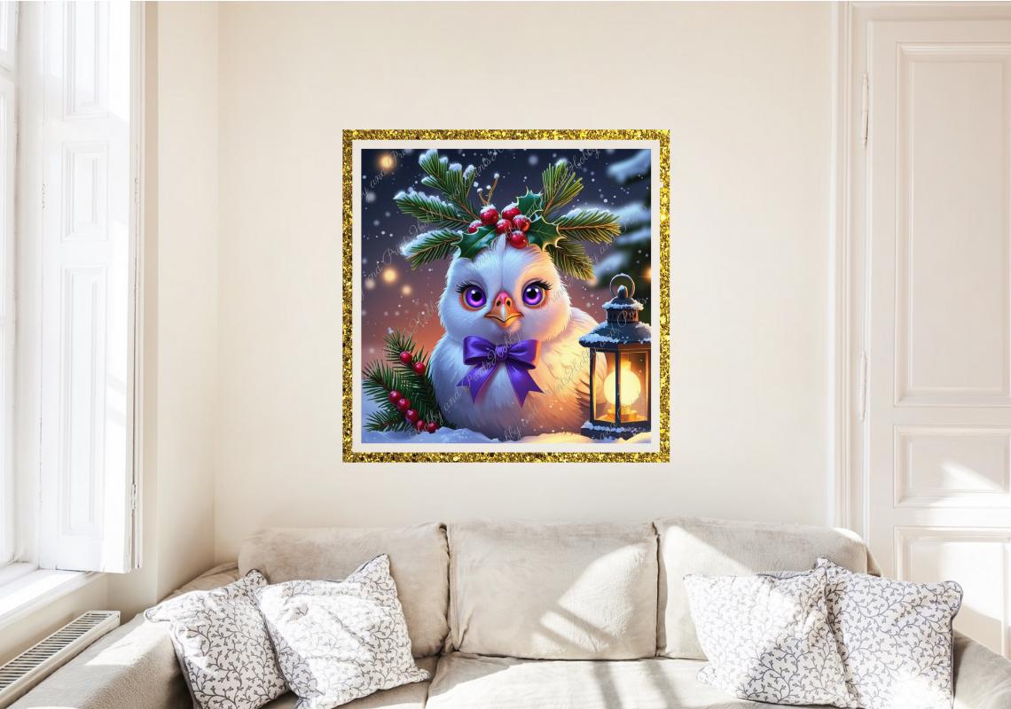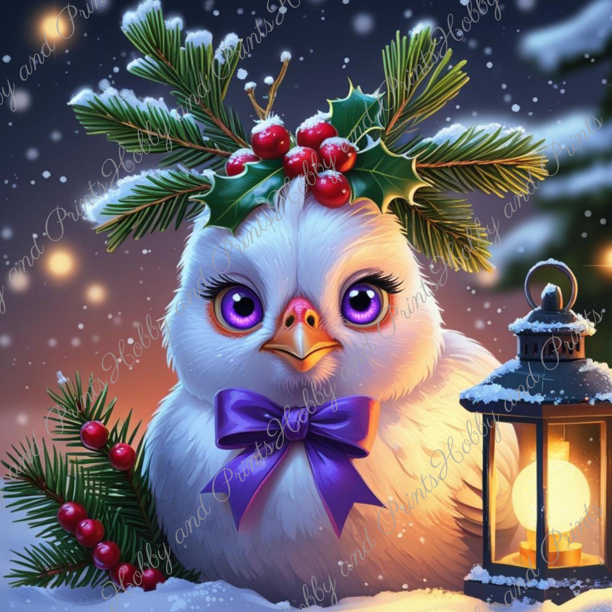 Immerse yourself in a glittering winter world with this enchanting diamond painting motif of a white bird, lovingly decorated with a purple bow, holly branch, and red berries. A sparkling lantern and gently falling snow perfectly complete this festive work of art โ ideal for the Advent season and as a stylish Christmas decoration.
