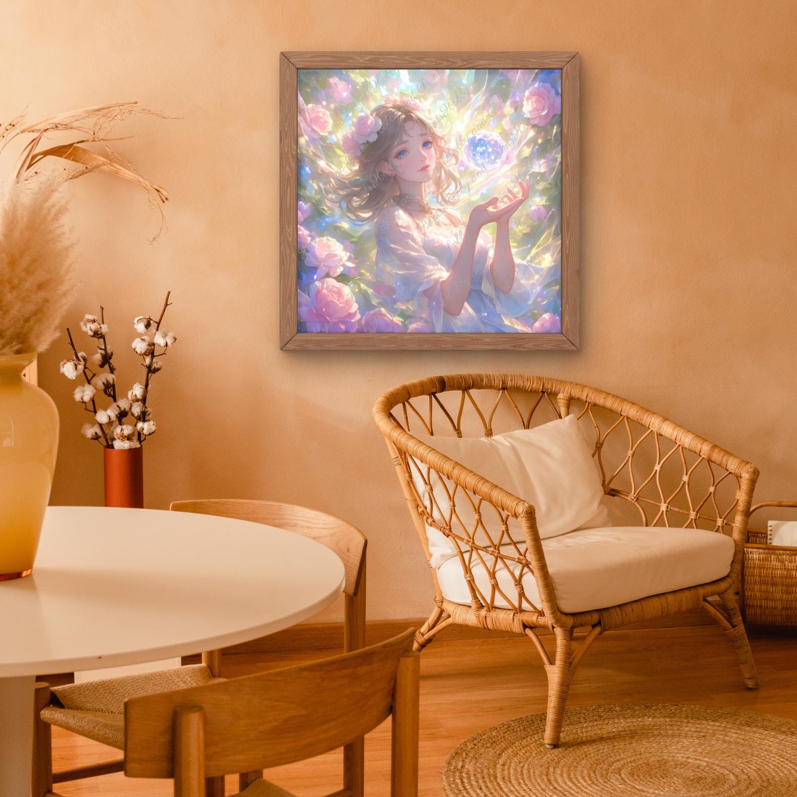 Immerse yourself in a world full of magic and light with this meticulously detailed "Flower Fairy with Ball of Light" diamond painting. An elegant young woman with gentle features, surrounded by a sea of ββroses and soft light, holds a floating ball of light in her hands β a symbol of harmony, hope, and imagination.