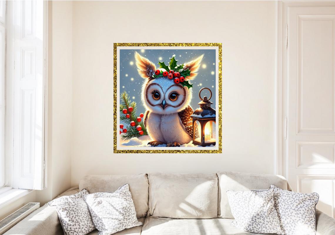This enchanting owl with bright brown eyes and festive decorations brings winter magic right into your home! With its charming gaze and atmospheric lantern, it's the perfect motif for your next 5D diamond painting project – to give as a gift or keep for yourself.