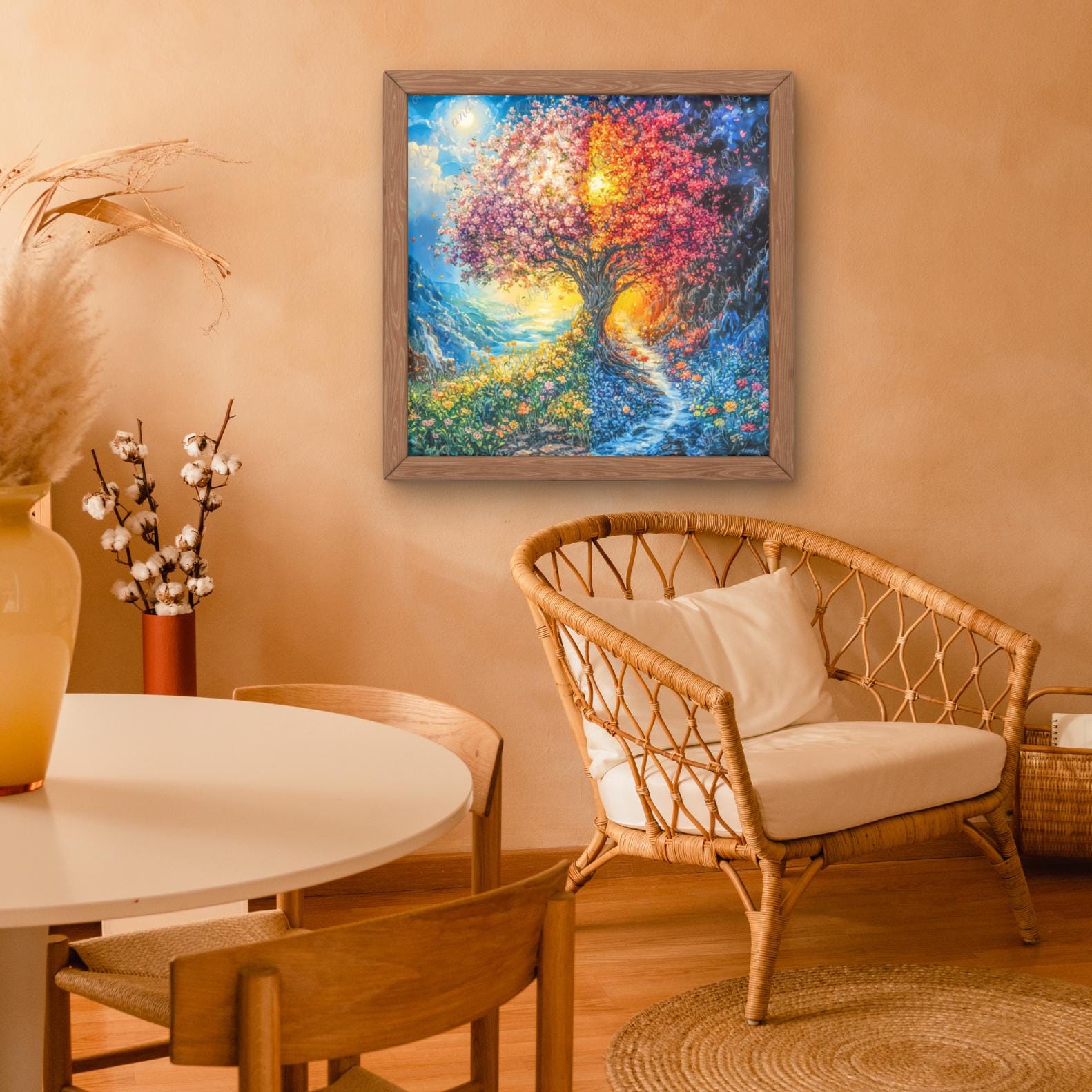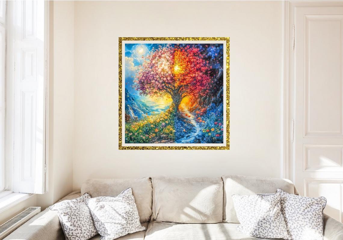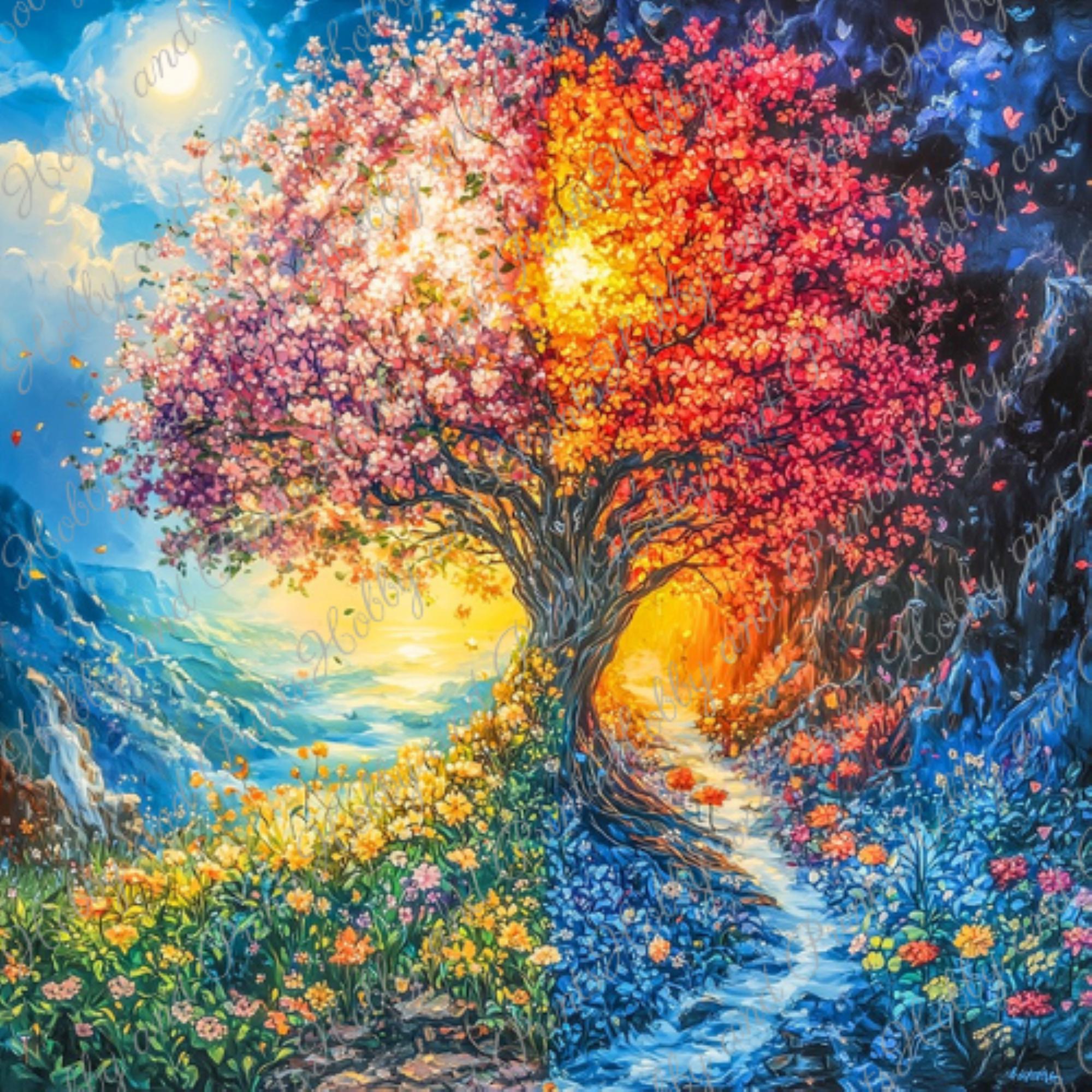 Experience the magic of all four seasons in a single work of art! Our high-quality "Tree of the Seasons" diamond painting impressively depicts the changing landscapes of nature β from blooming spring to sunny summer, golden autumn, and peaceful winter.