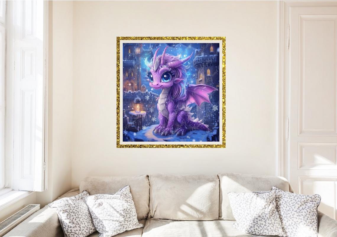Our diamond painting "Purple Dragon at Night in a Winter City" will transport you to a dreamy fantasy world. A cute, purple dragon sits in a snowy city under a starry sky β surrounded by sparkling snowflakes and a mysterious nighttime atmosphere.