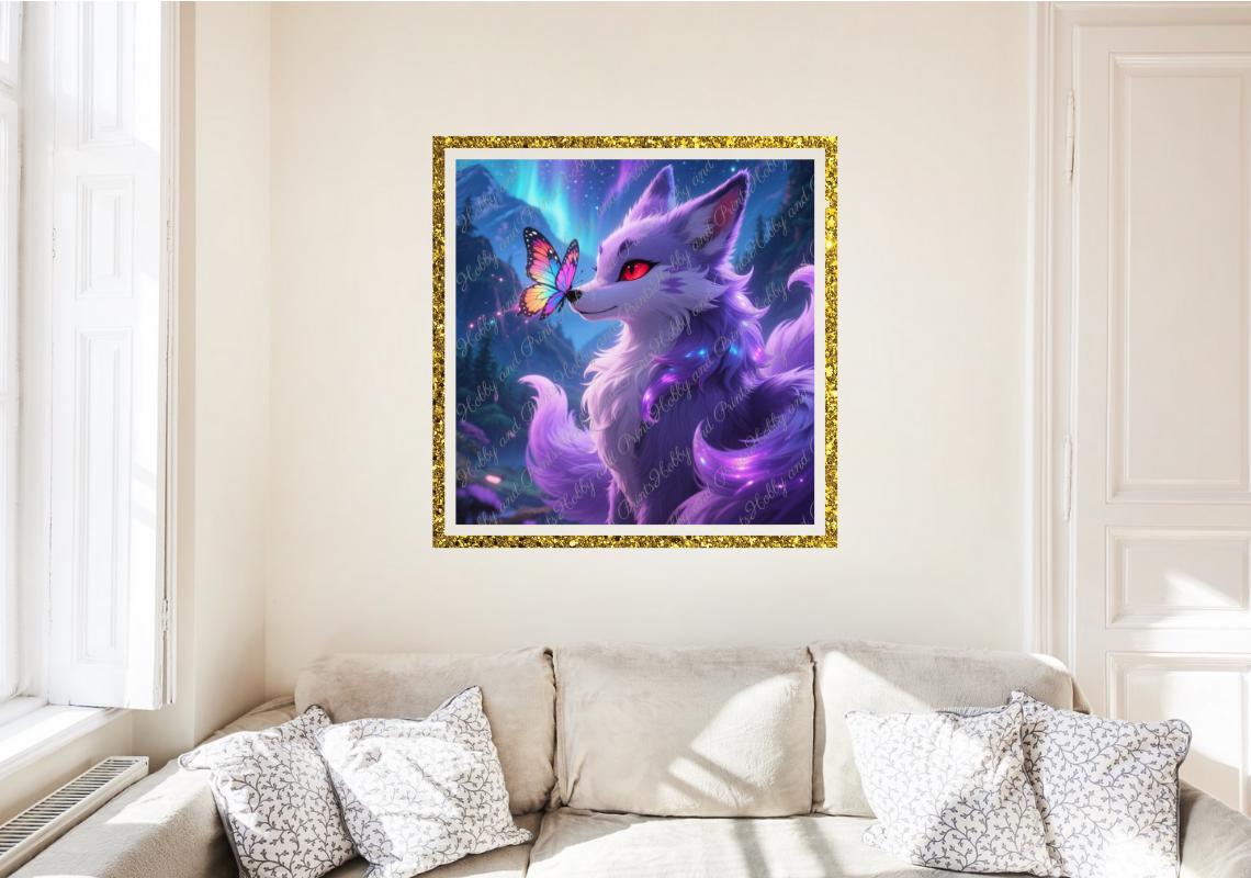 π¦ Diamond Painting Purple Fox with Butterfly & Northern Lights | Mystical Night Scene in Mountains | Custom Stones | Square or Round Stones | Canvas Options