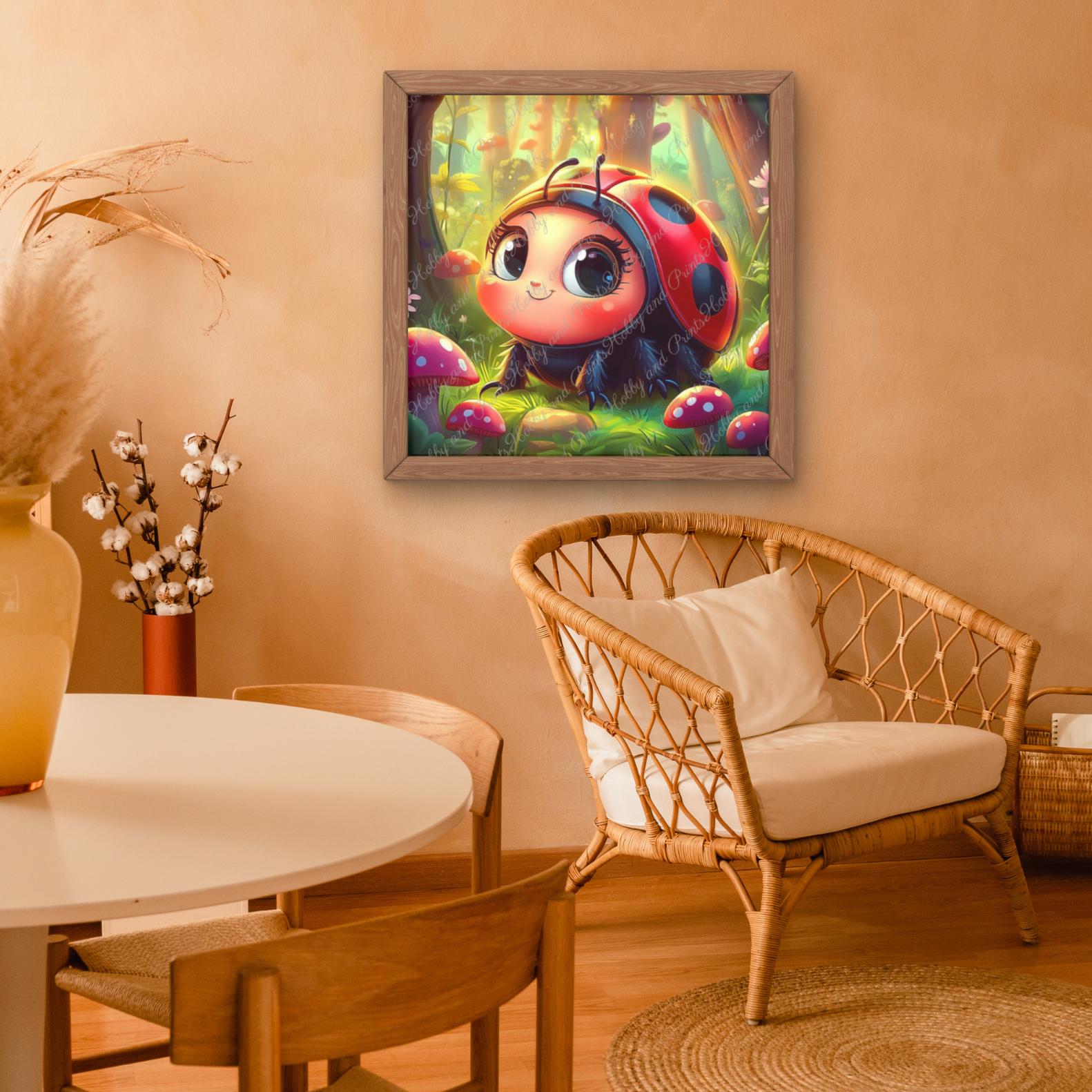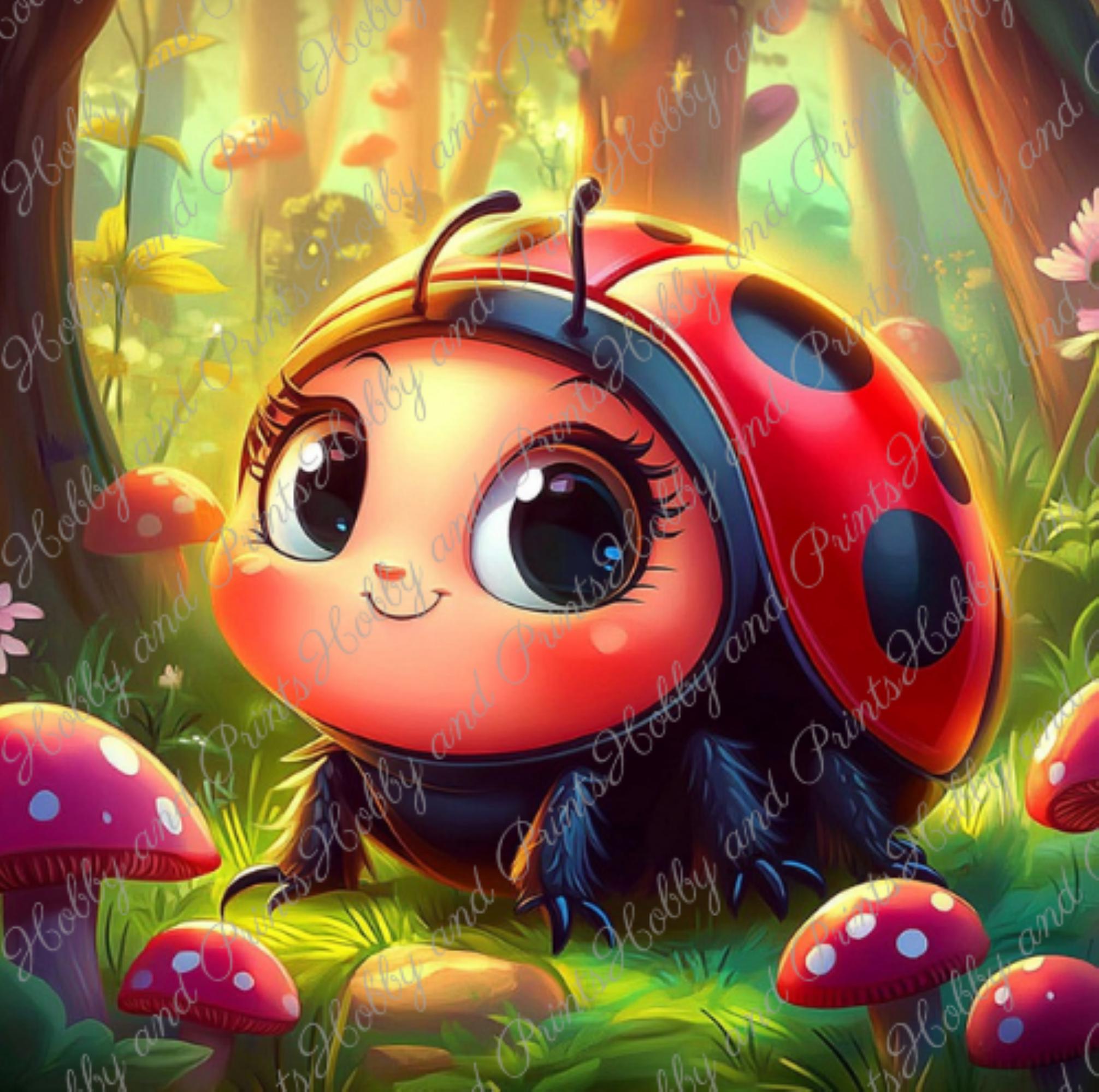 Put a smile on your child's face with our "Happy Ladybug in the Forest" diamond painting in a charming cartoon style!