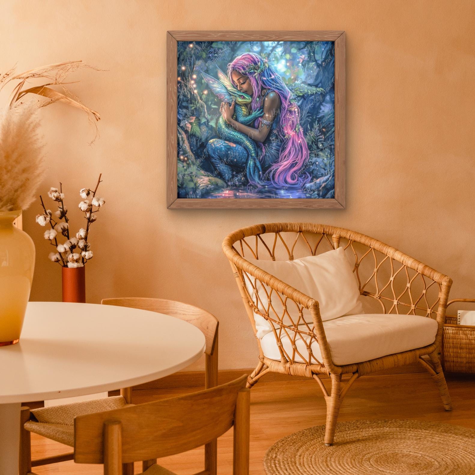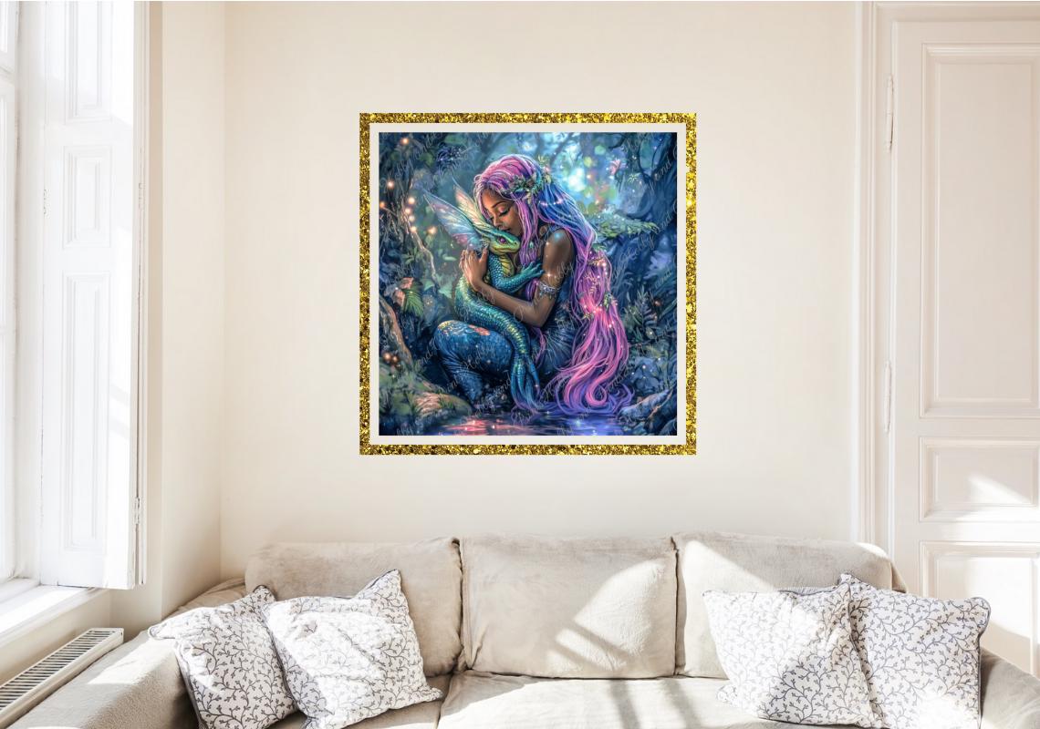 Bring magic and light into your home with the mystical "Mermaid with Water Dragon" diamond painting!