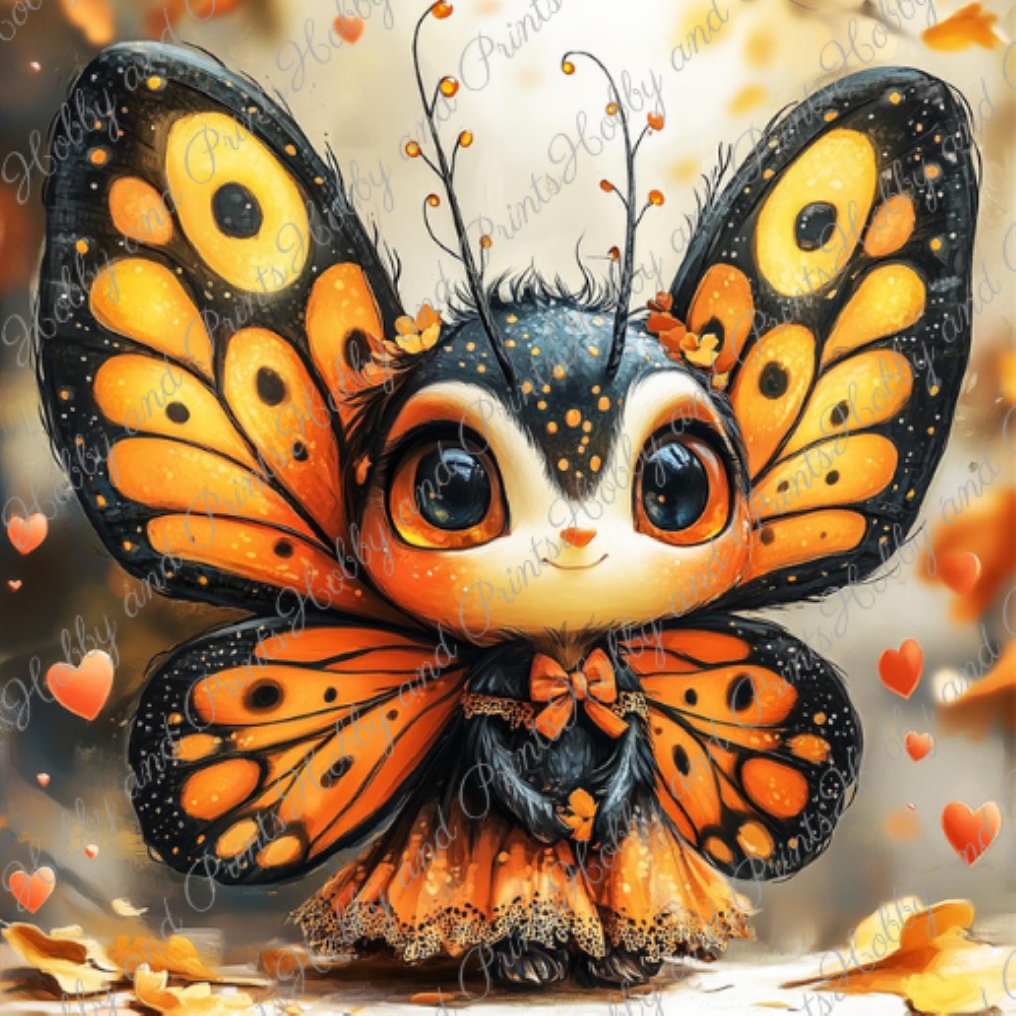 π¦ Diamond Painting Butterfly Cartoon Style | Yellow-Orange with Black Dress with Special Stones | Round or Square Stones | Canvas Options