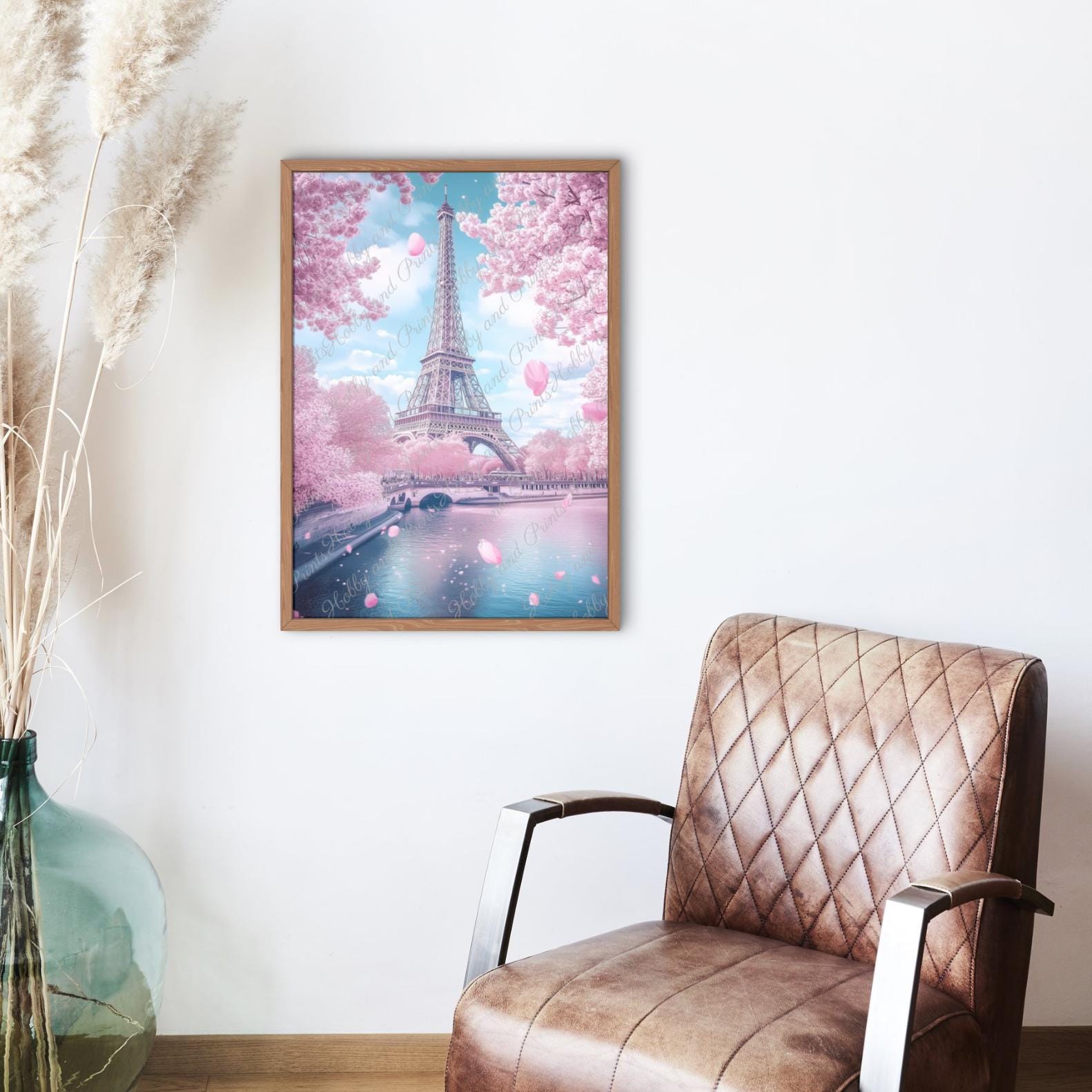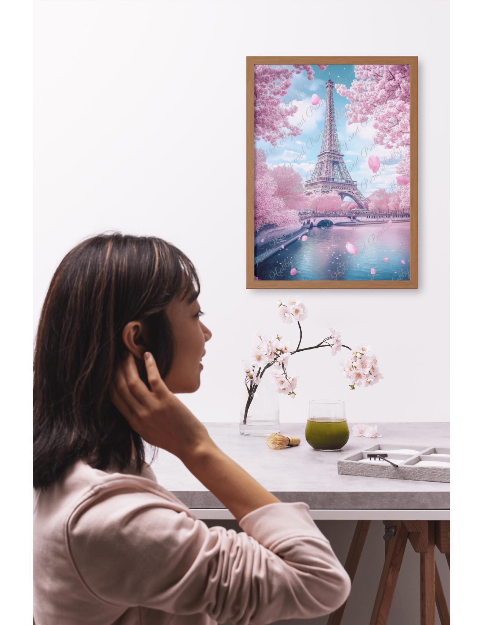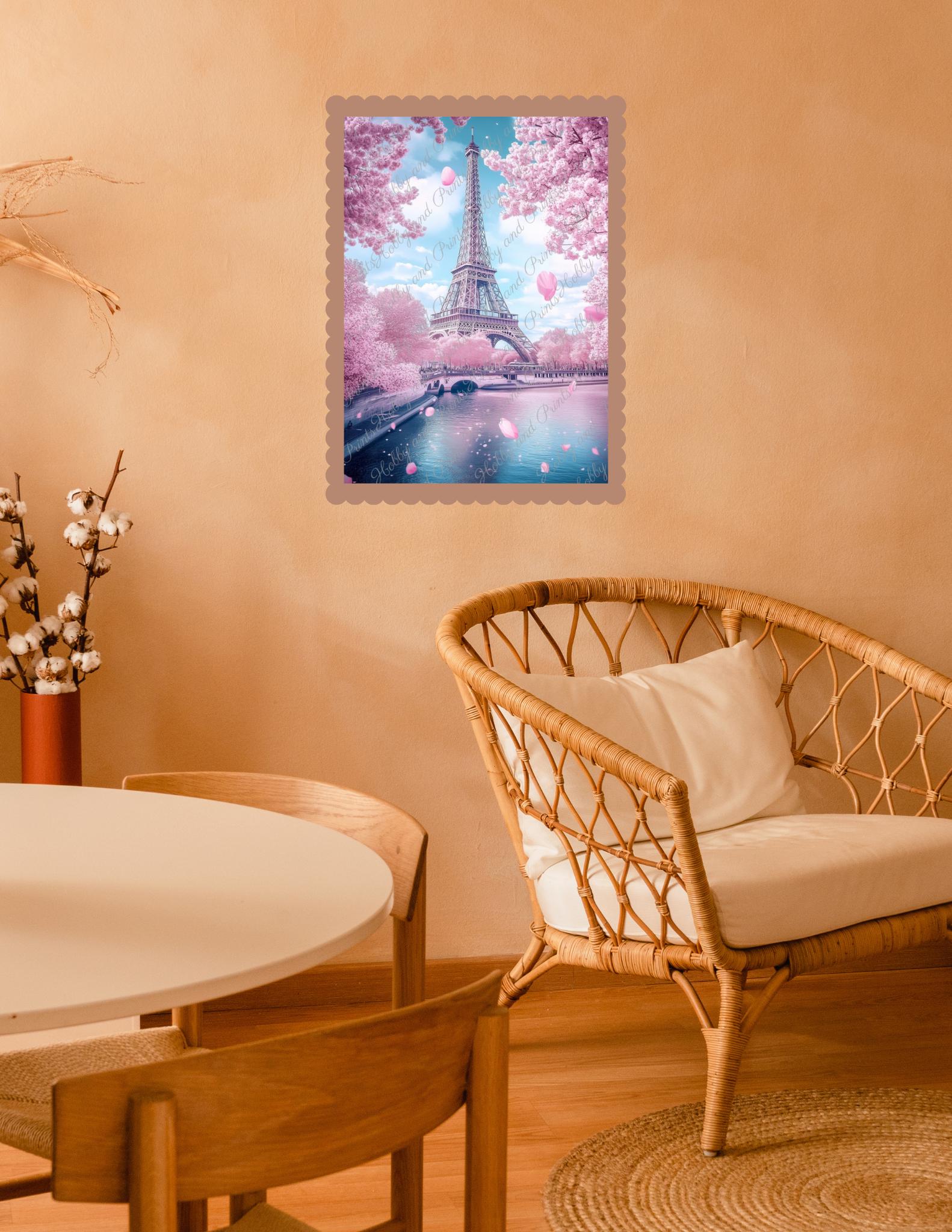 Erleben Sie den Zauber von Paris mit dieser traumhaften Diamantmalerei „Eiffelturm mit Kirschblüten und See“. Das romantische Motiv zeigt den weltberühmten Eiffelturm, eingebettet in eine malerische Landschaft mit blühenden Kirschbäumen und einem sanft schimmernden See.