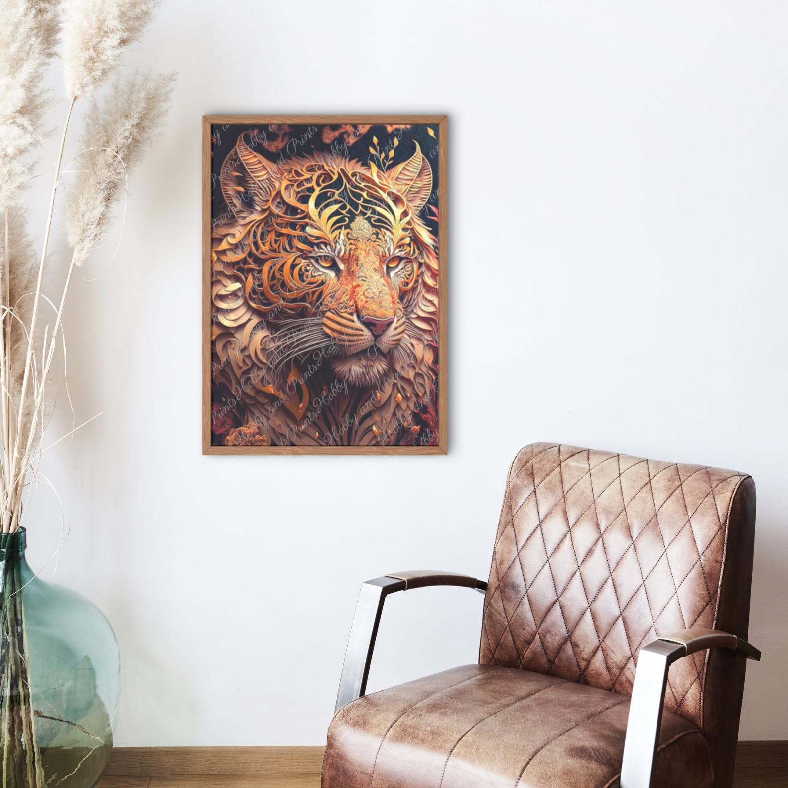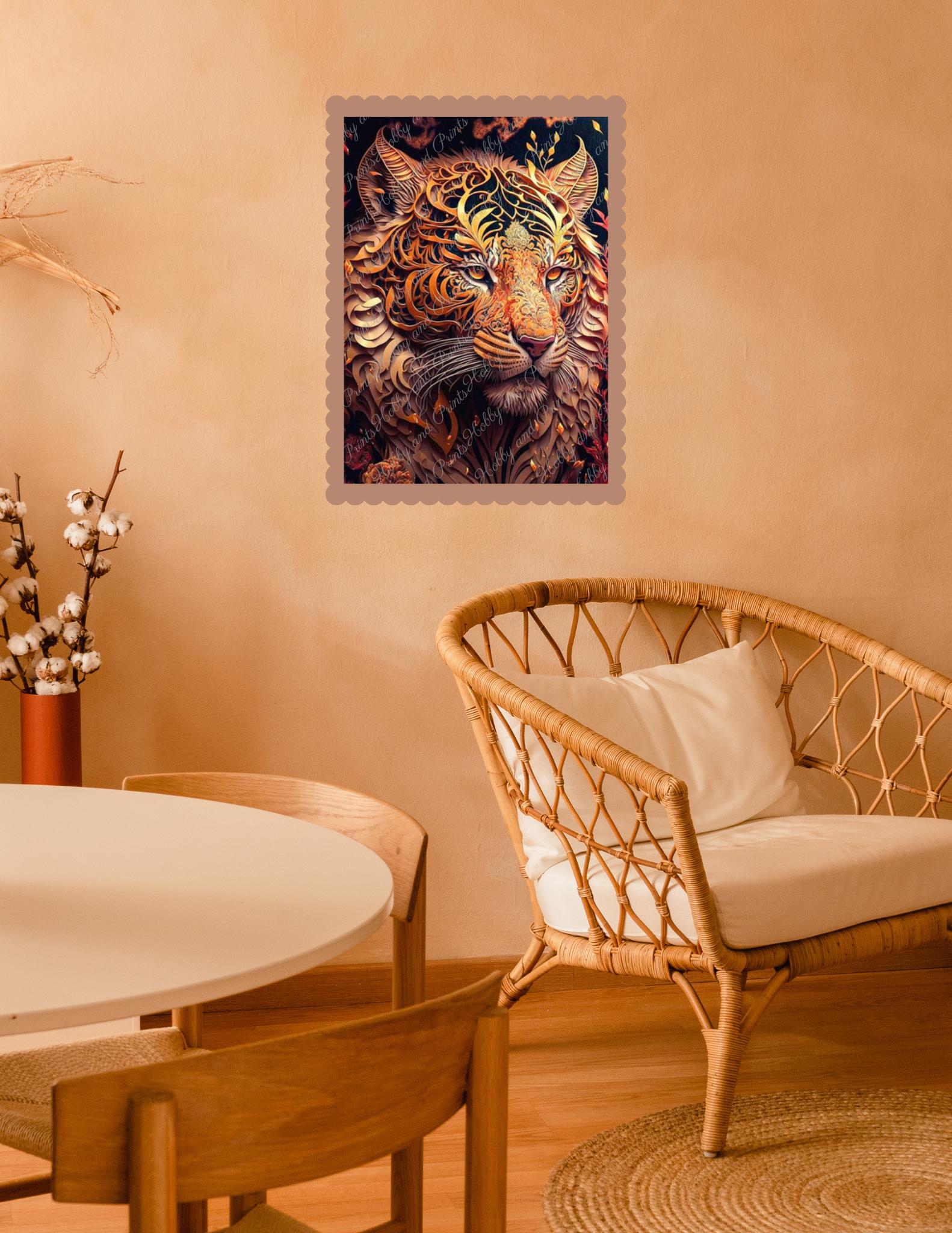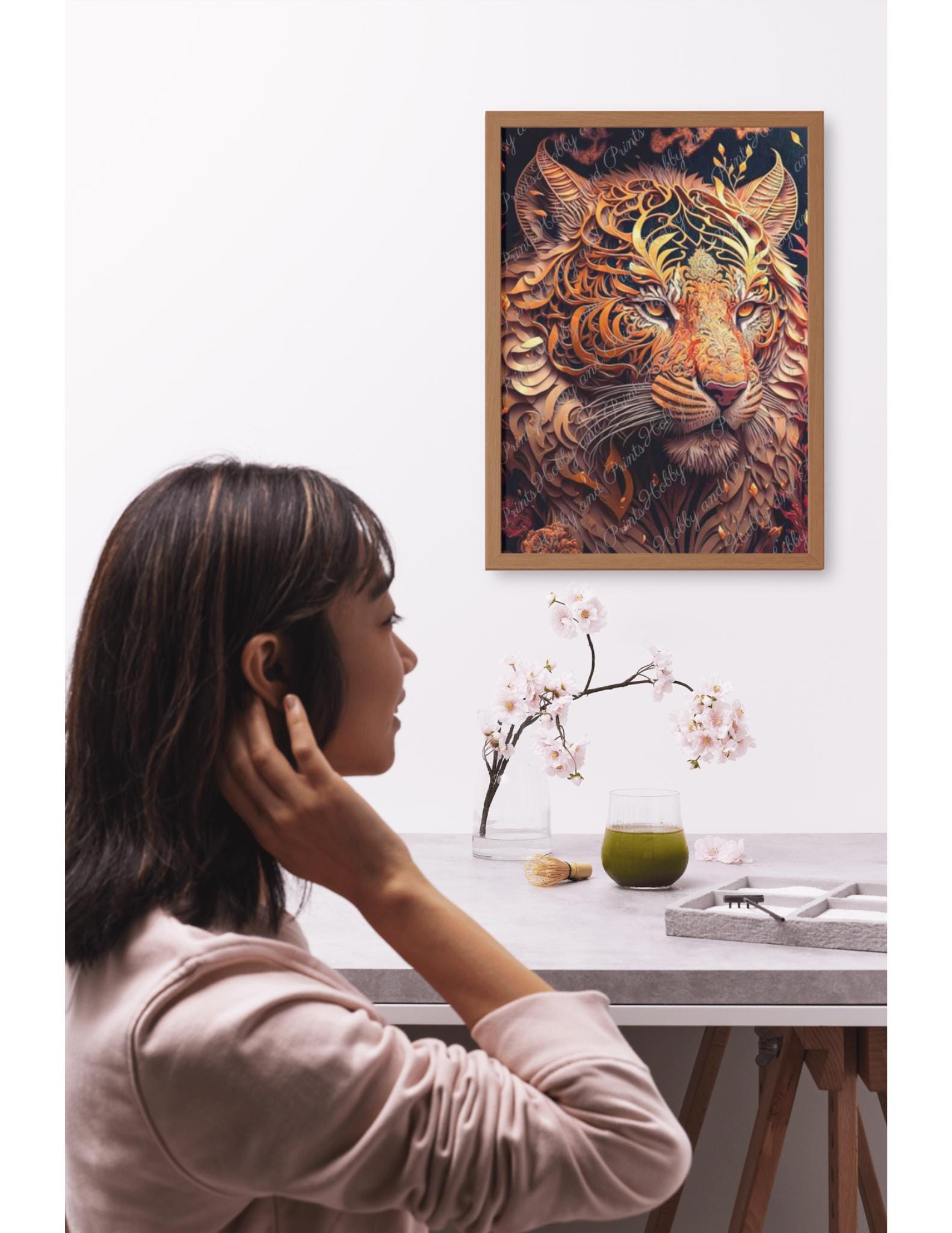 Erleben Sie die Magie der Tierwelt mit diesem atemberaubenden Diamantmalerei „Tiger mit Ornamenten“. Das lebendige Motiv zeigt den König des Dschungels, verziert mit Ornamenten, die an Holzschnitzereien erinnern.