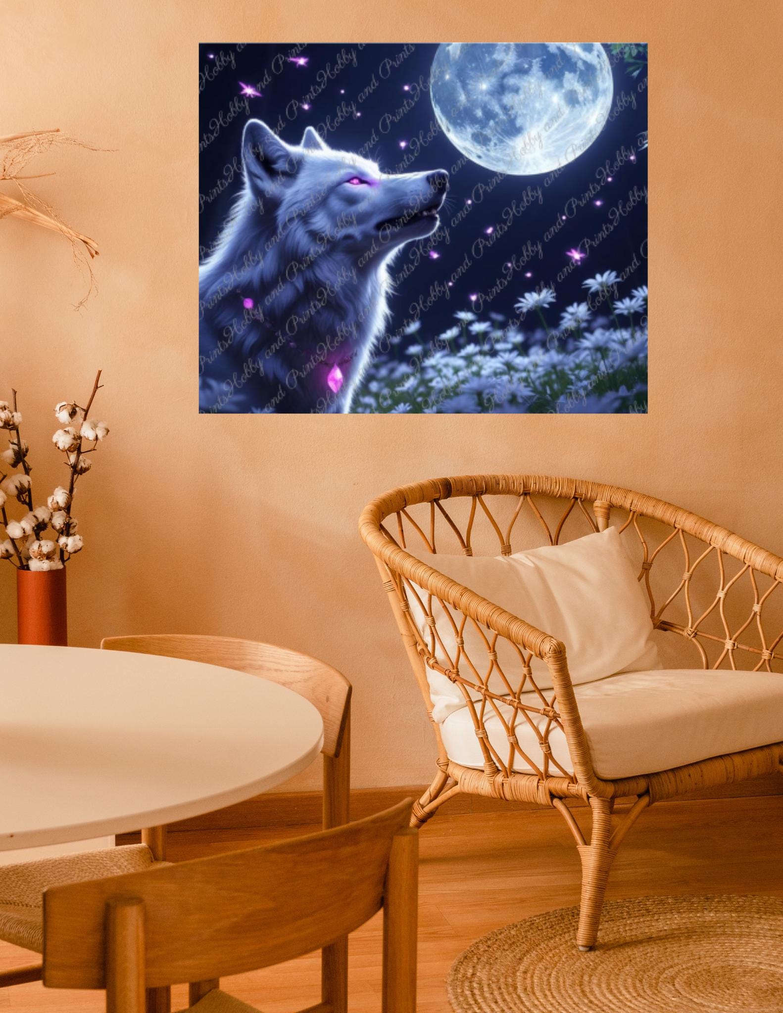 Diamond Painting Wolf at Night Under the Moon | Special Stones | Square or Round Stones | Canvas Choice