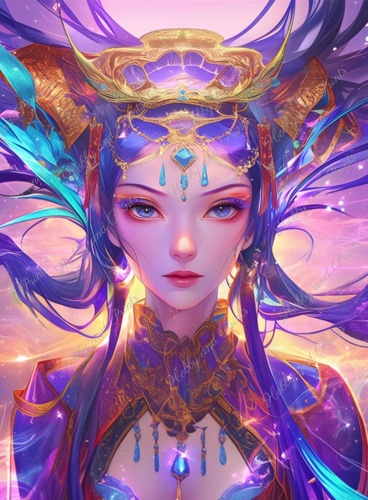 Verleihen Sie Ihrem Zuhause einen Hauch königlicher Magie mit diesem luxuriösen Diamantbild „Kaiserin der Sterne“. Das atemberaubende Motiv zeigt eine edle Fantasiekaiserin mit einer kunstvollen goldenen Krone, funkelnden Juwelen und leuchtenden Farben – ein absolutes Highlight für Fans von Magie, Mythologie und dekorativer Kunst.