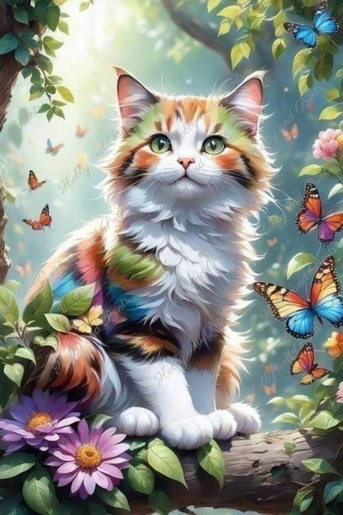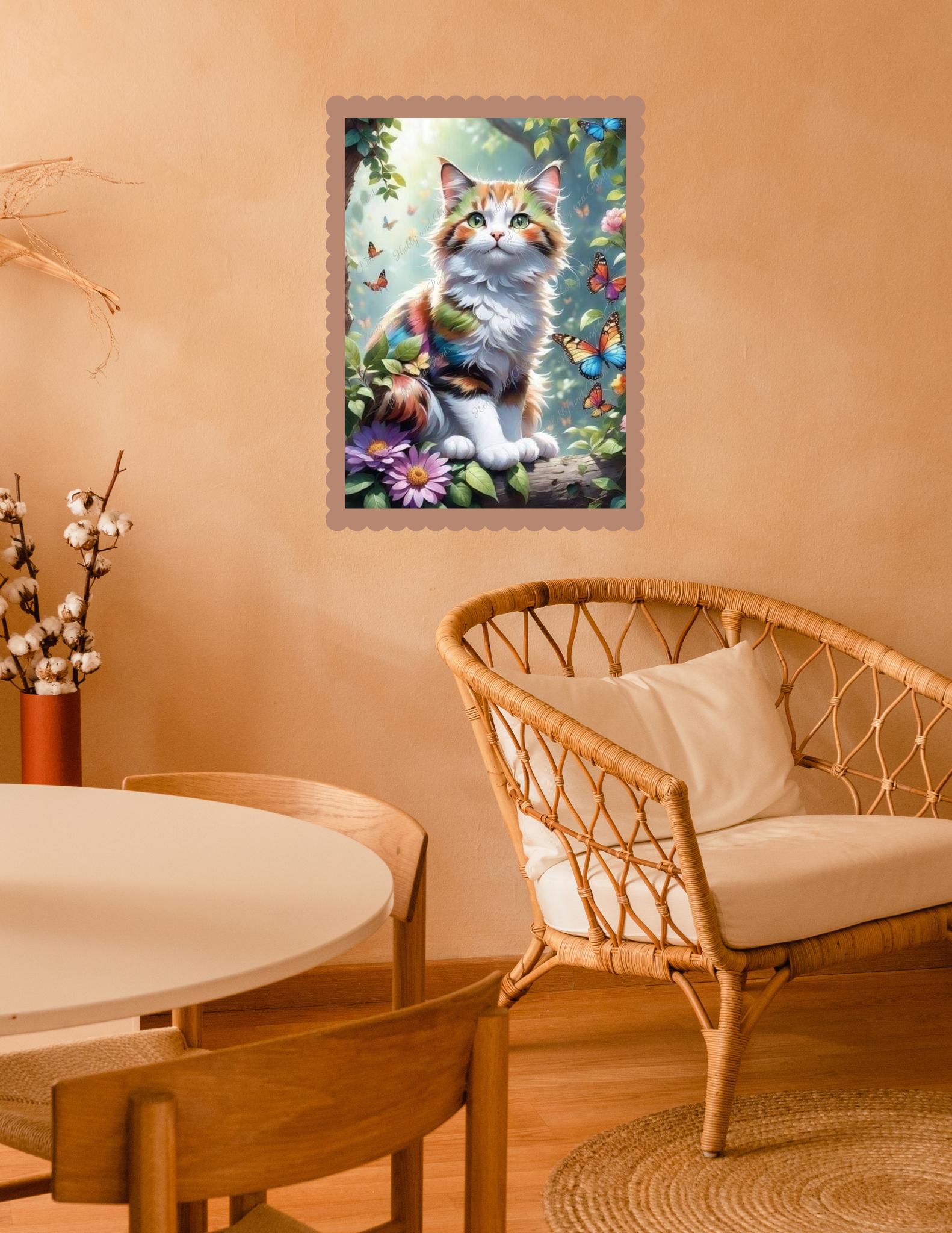 🐱Diamond Painting Cat with Butterflies – Colorful Spring Cat in the Garden | Special Stones | Round or Square Stones | Canvas Options