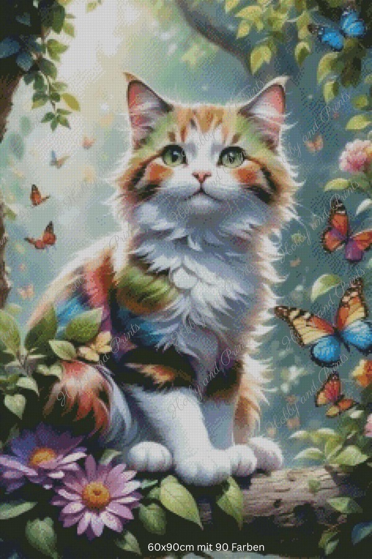 Immerse yourself in a magical spring world with this colorful diamond painting "Cat with Butterflies"! The sweet, fluffy cat sits dreamily among colorful flowers and butterflies – a motif that will delight the hearts of cat lovers and nature enthusiasts.