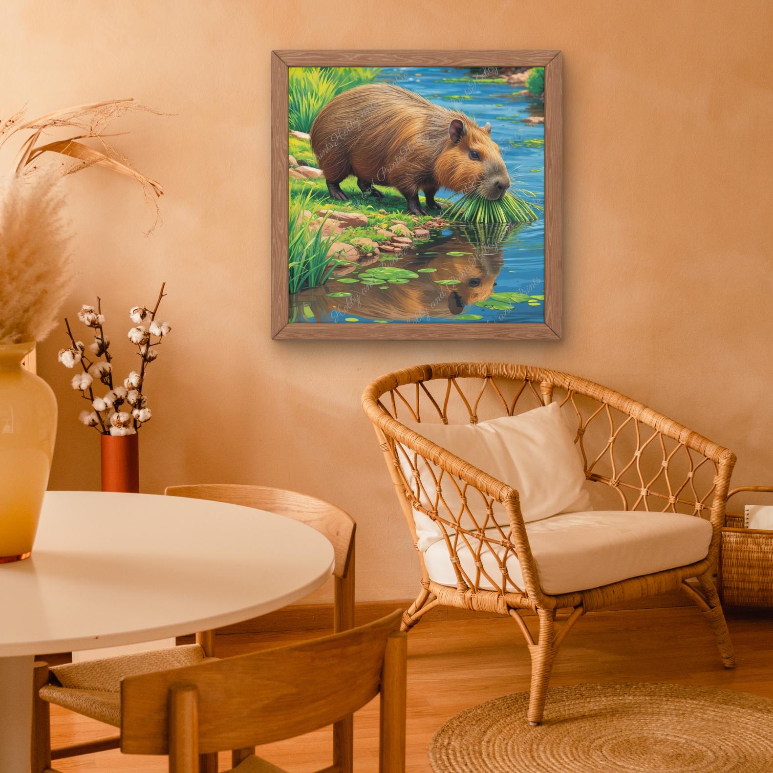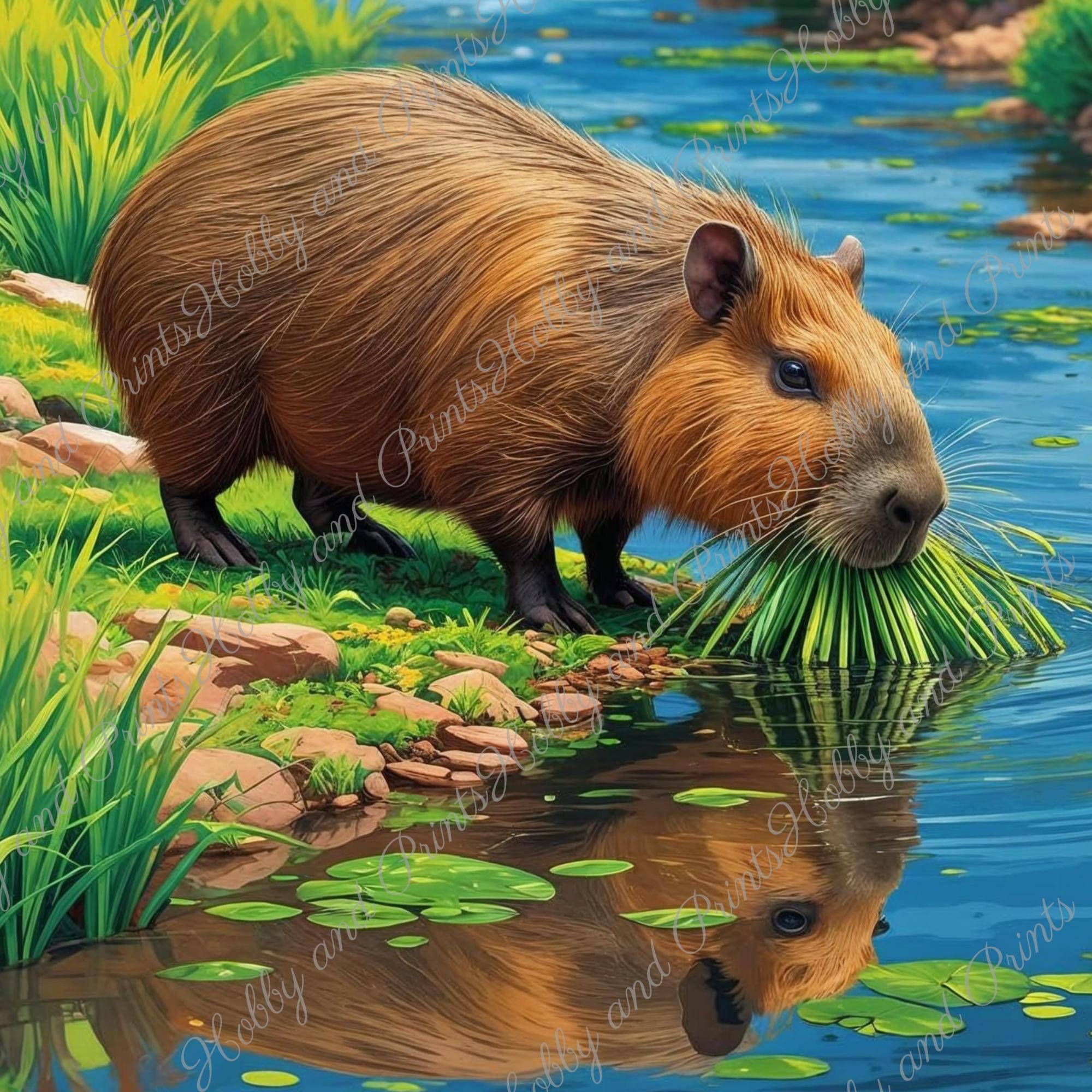 🐾Capybara Diamond Painting Full Size – 5D DIY Picture with a Capybara on the Riverbank | Animal Motif Nature Art Special Stones | Canvas Options | Round or Square Stones