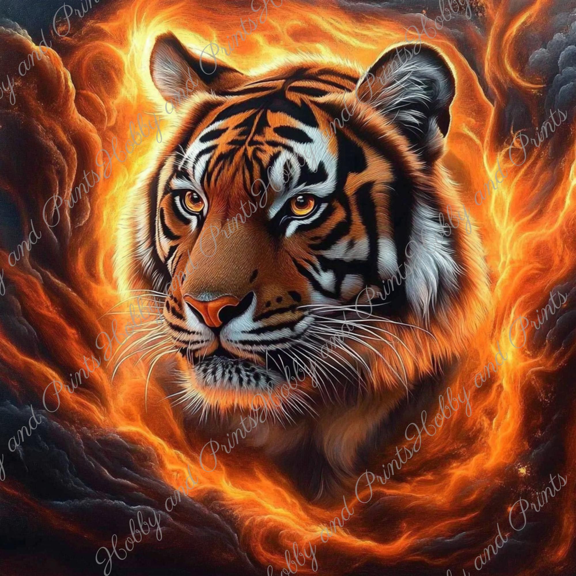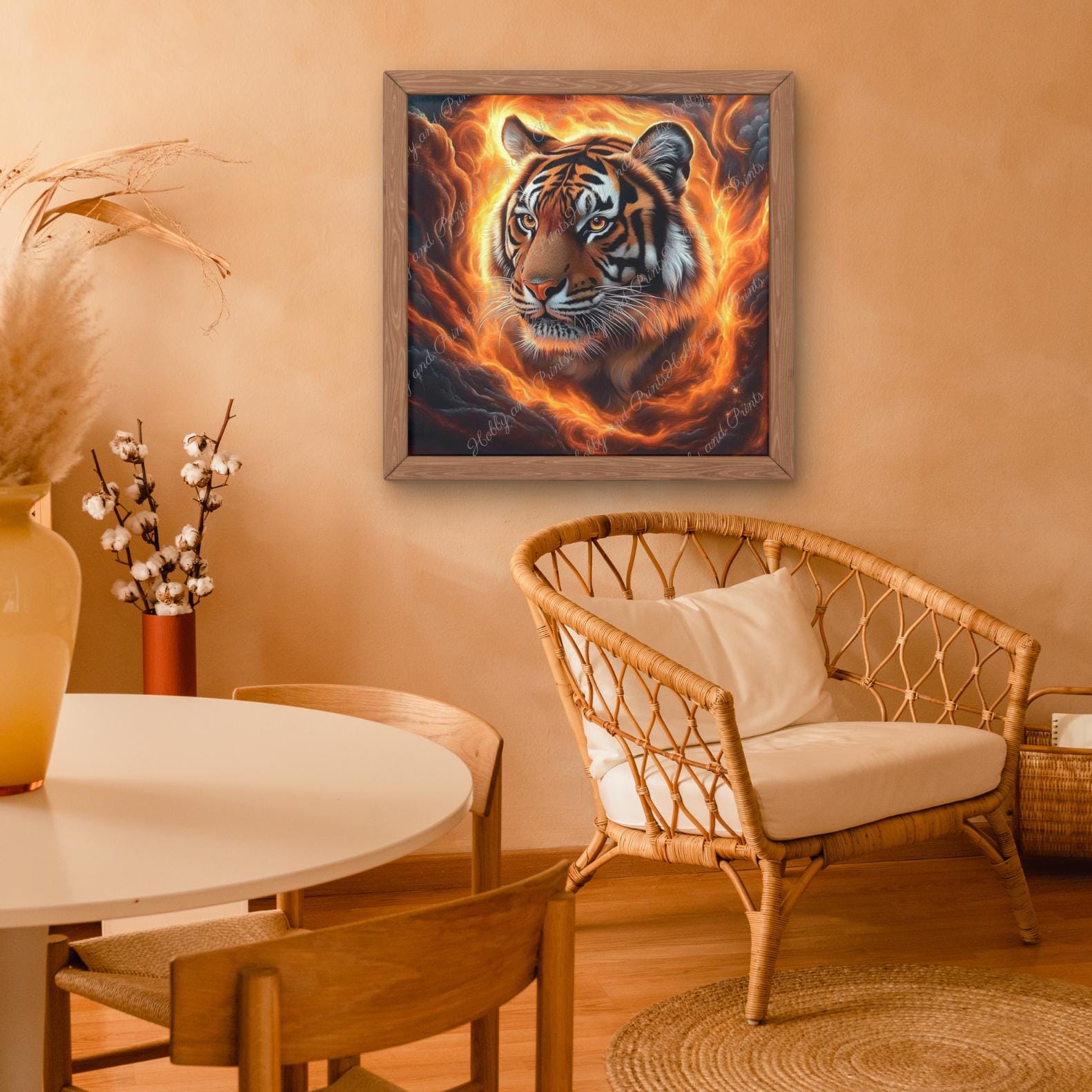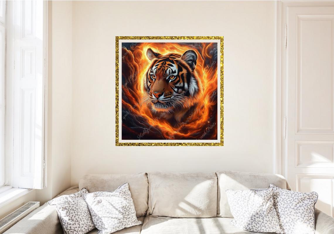 Fire Tiger Diamond Painting β Majestic 5D Animal Picture with Flames β Wild & Powerful | Custom Stones | Canvas Options | Round or Square Stones