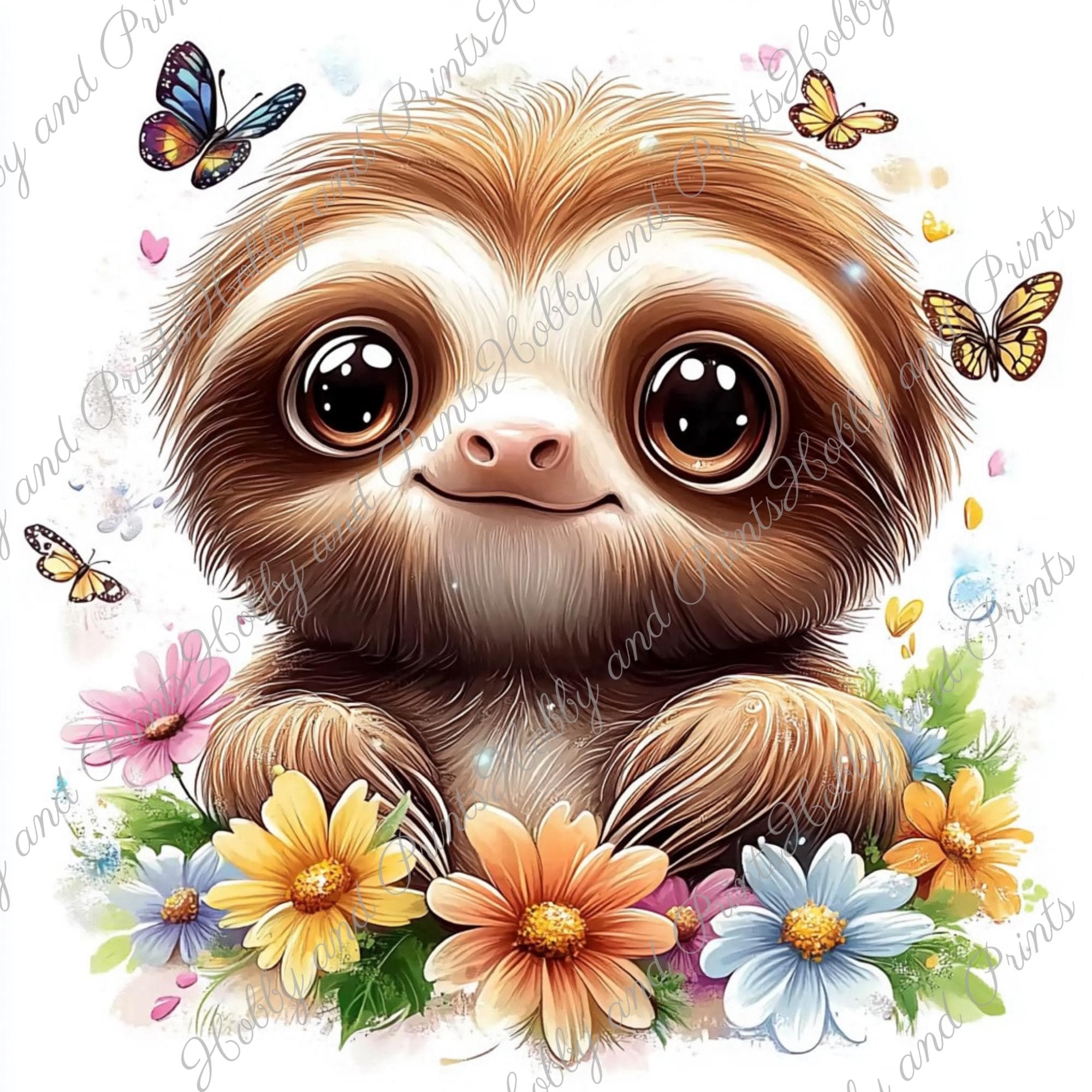 Cute Sloth Diamond Painting with Flowers & Butterflies