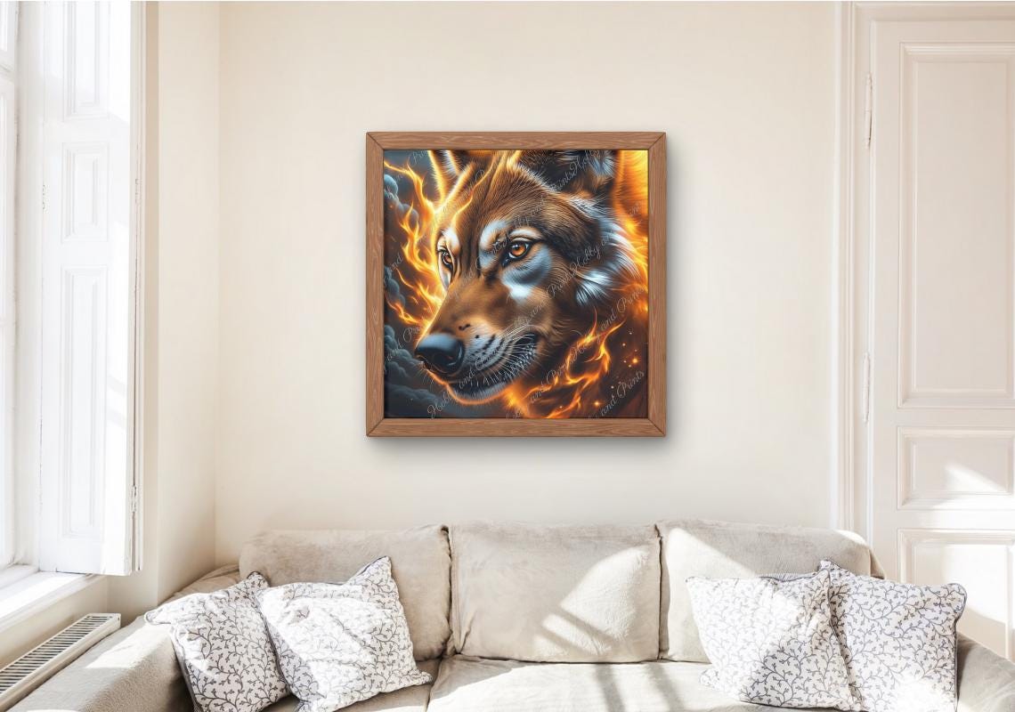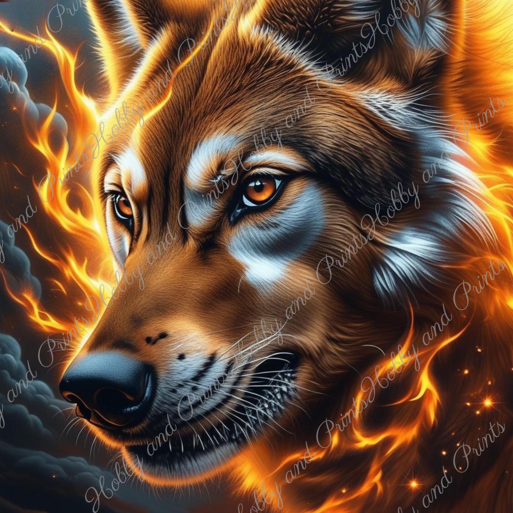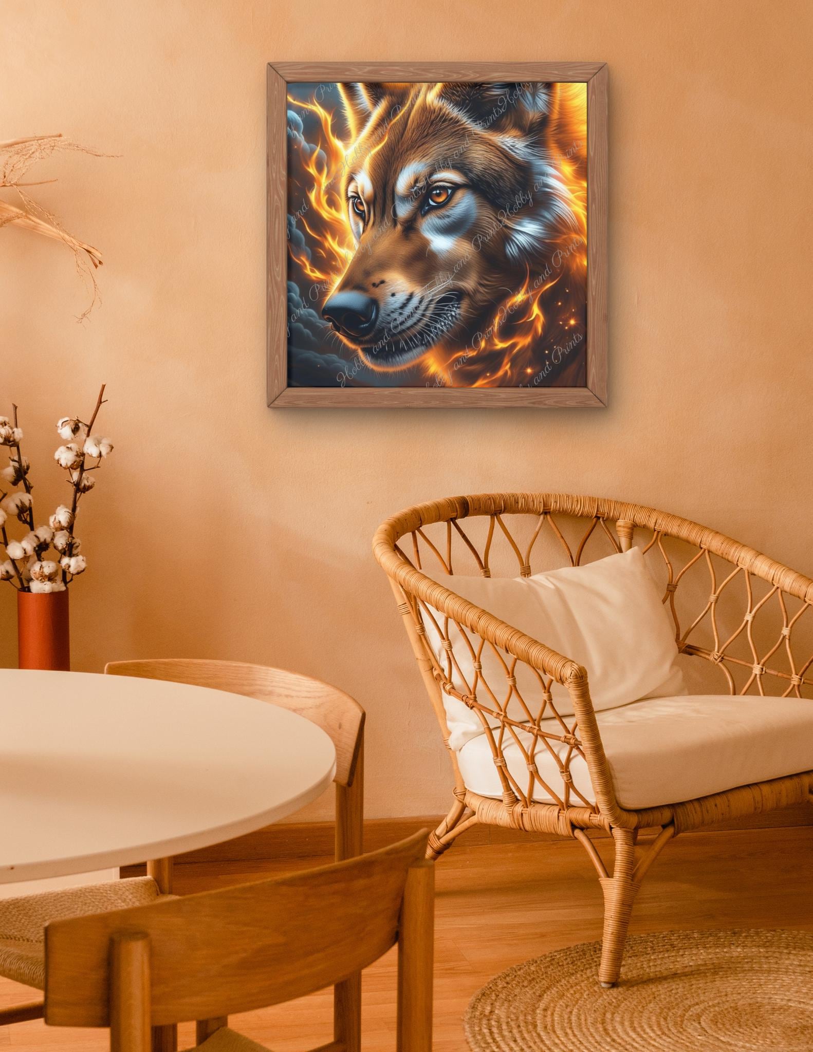 Wolf in Fire Diamond Painting – Powerful Wolf Portrait | DIY Diamond Art Kit | Luminous Animal Motif with Flames – Includes Custom Stones | Canvas Options | Round or Square Stones