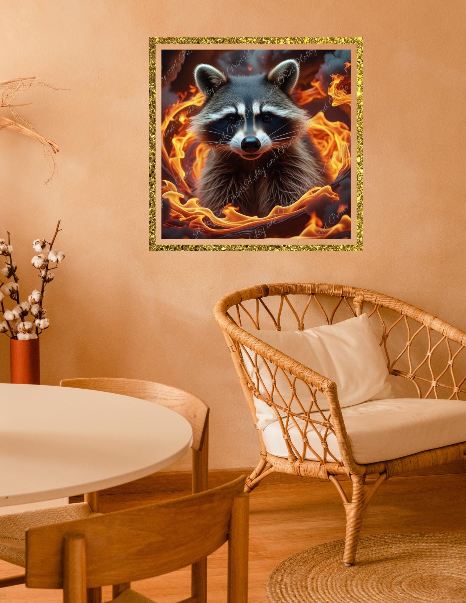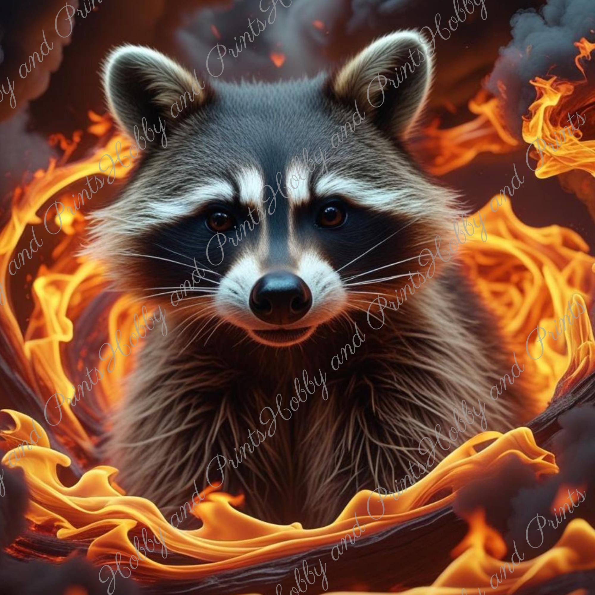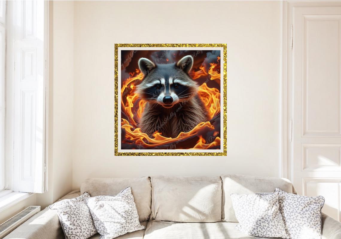 Dive into the fascinating world of diamond paintings with this powerful motif: An expressive raccoon surrounded by blazing flames combines nature with mysticism. Perfect for animal lovers, fantasy fans, or as an unusual wall decoration!