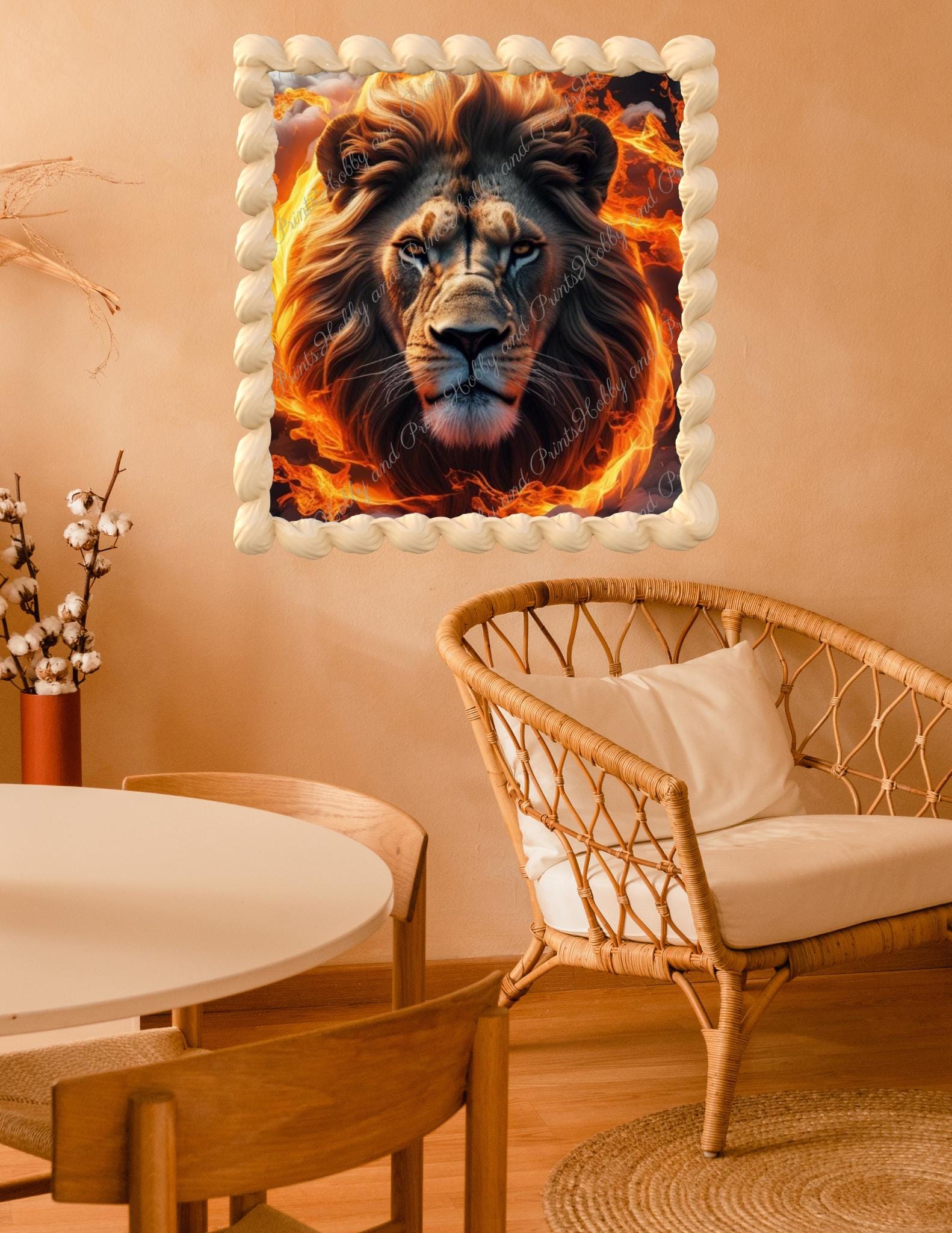 Transform your wall into a stunning work of art with this unique "Fire Lion" diamond painting. The powerful lion's head, surrounded by blazing flames, symbolizes strength, courage, and elegance β perfect for your home, office, or as a unique gift.