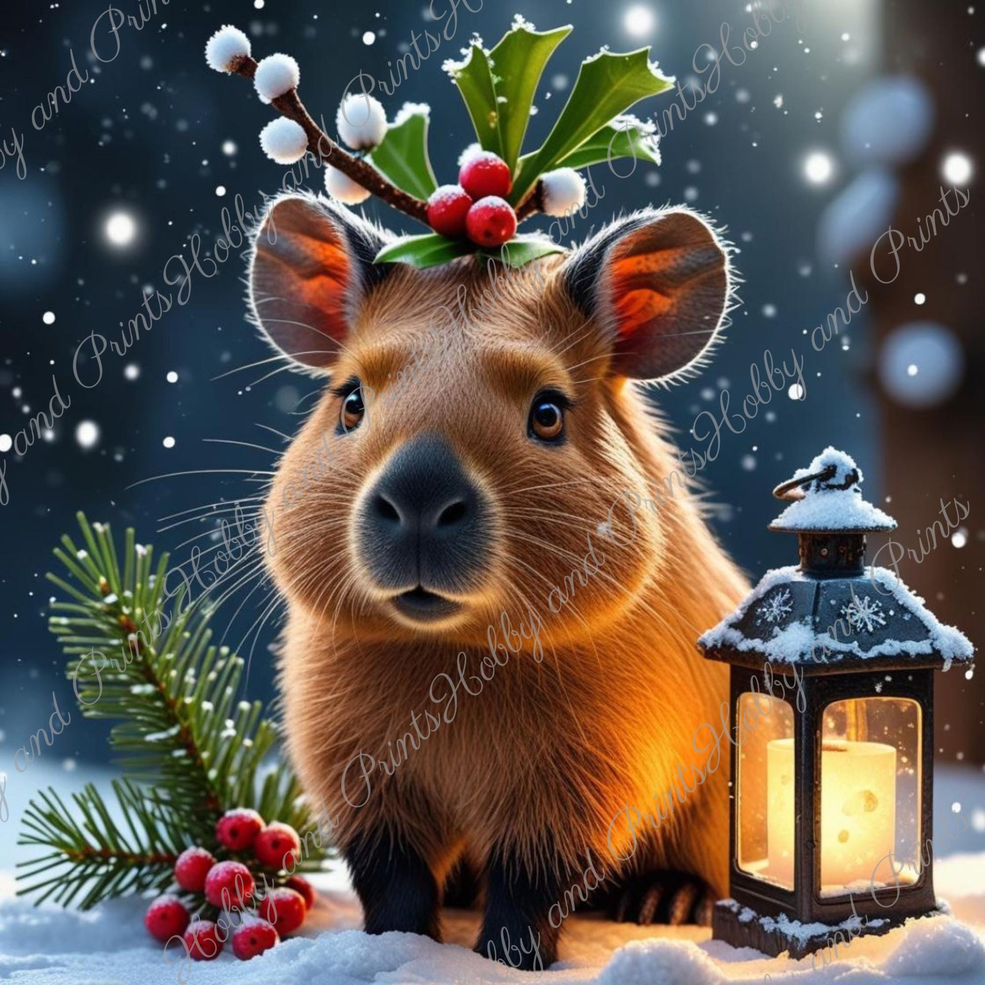 Transform your home into a winter wonderland with this adorable capybara diamond painting. The cute capybara wears a festive holly crown and sits next to a glowing lantern in the snow β an ideal motif for the Christmas season, as a gift, or as a creative retreat for yourself.
