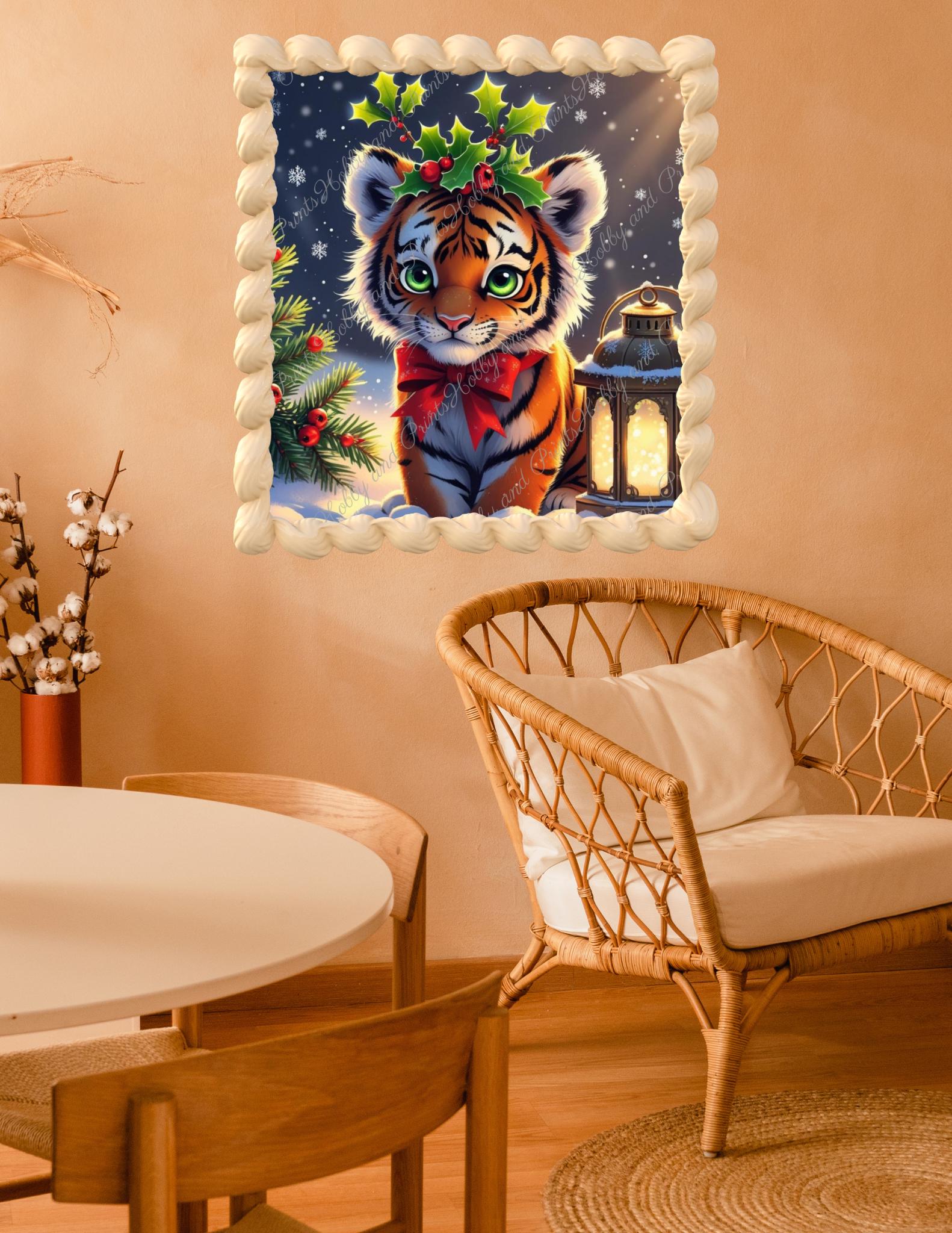 This enchanting tiger with bright green eyes, a red bow, and festive decorations brings winter magic right into your home! With its charming gaze and atmospheric lantern, it's the perfect motif for your next 5D diamond painting project – to give as a gift or keep for yourself.