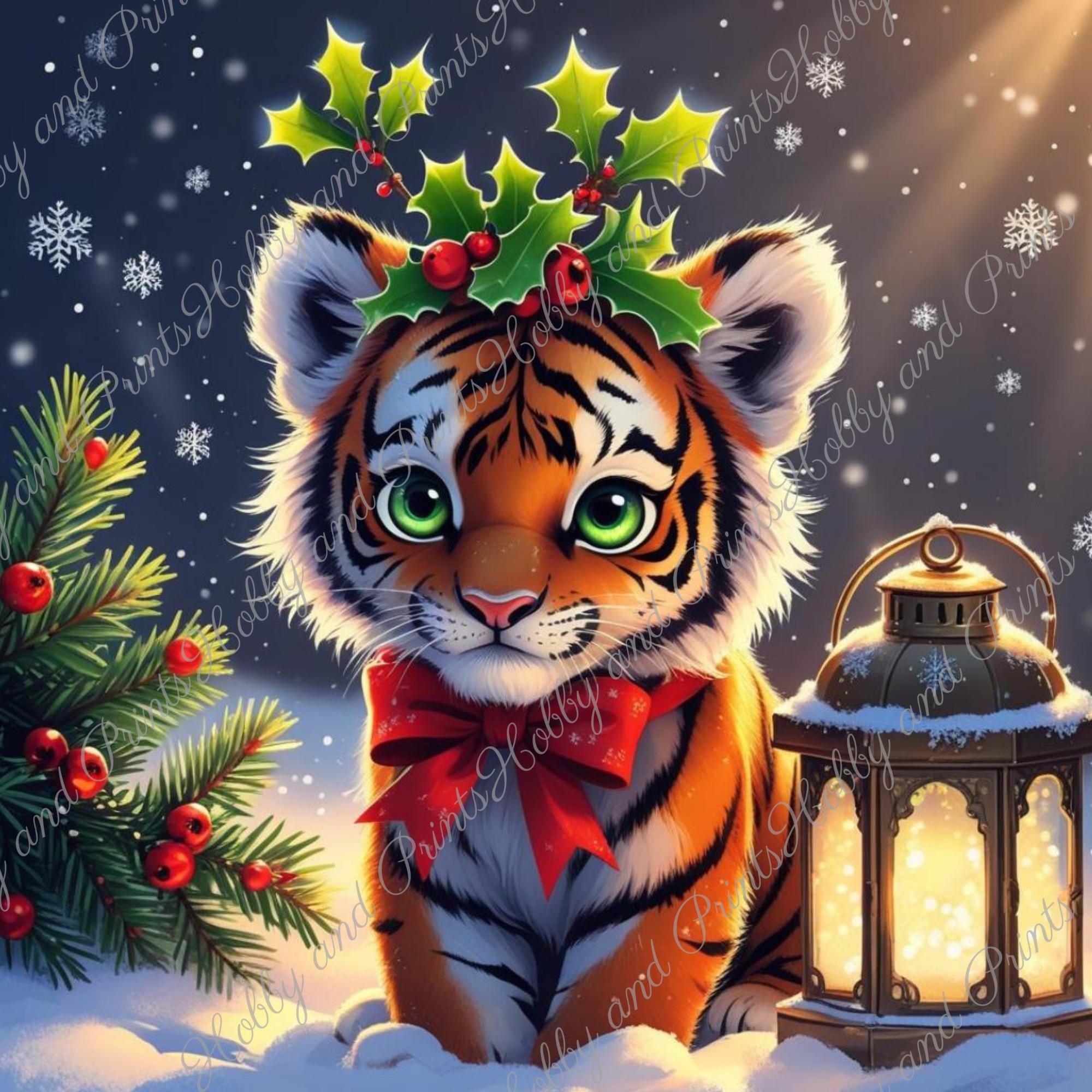 ✨ Diamond Painting Tiger Christmas | 5D DIY Winter Picture with Lantern & Berries | Sparkling Animal Motif Gift | Special Stones | Canvas Options | Round or Square Stones