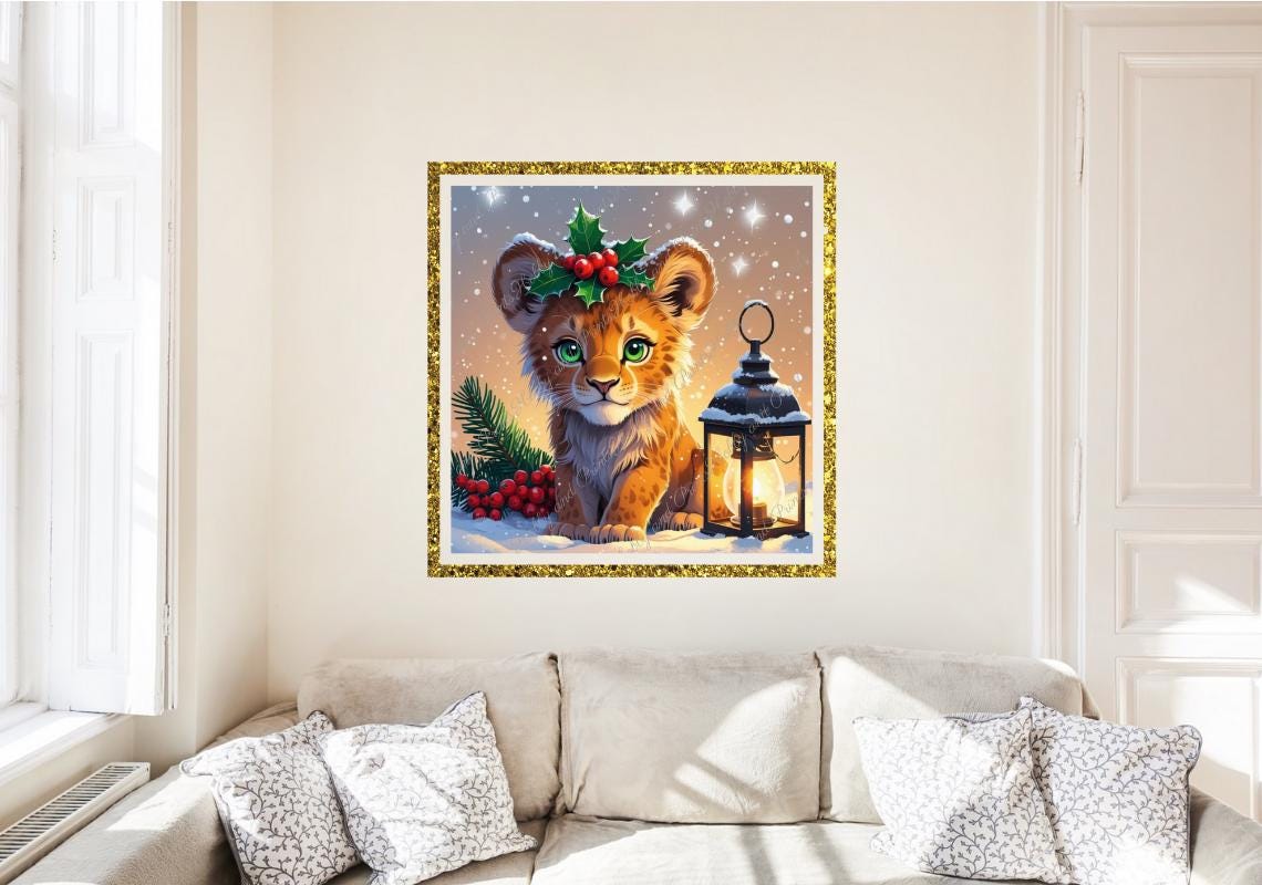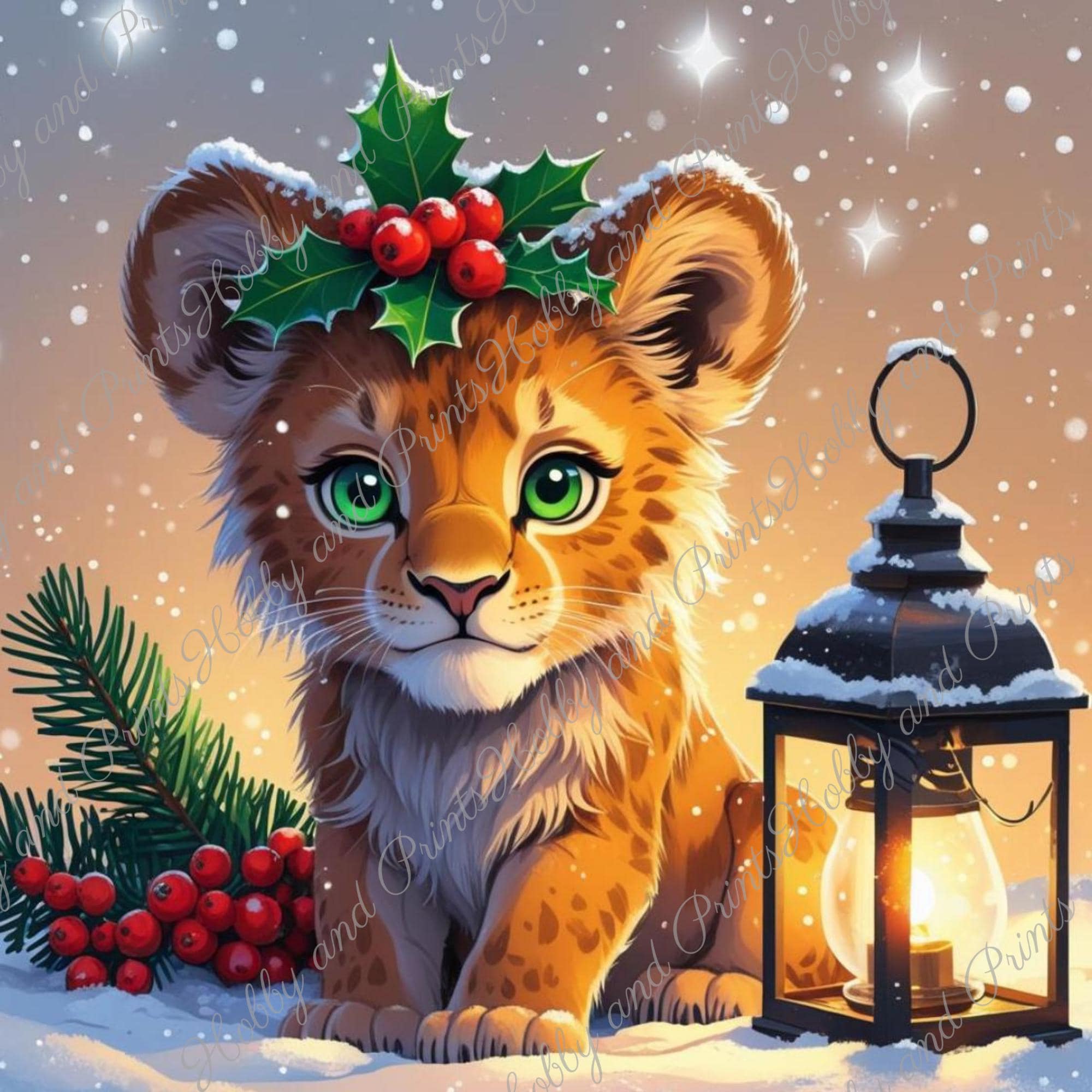 This enchanting tiger with bright green eyes and festive decorations brings winter magic right into your home! With its charming gaze and atmospheric lantern, it's the perfect motif for your next 5D diamond painting project – to give as a gift or keep for yourself.