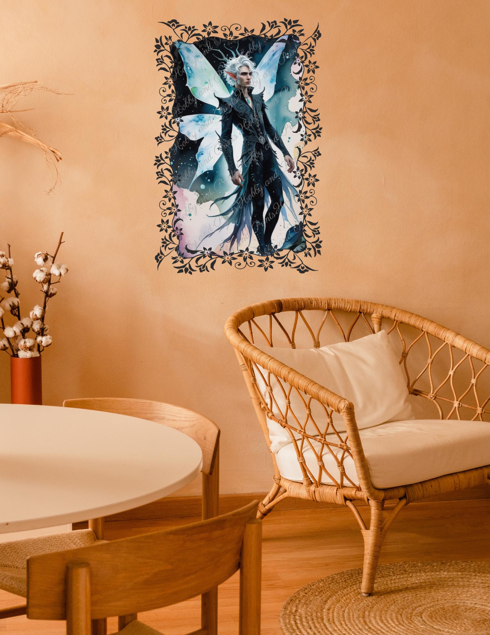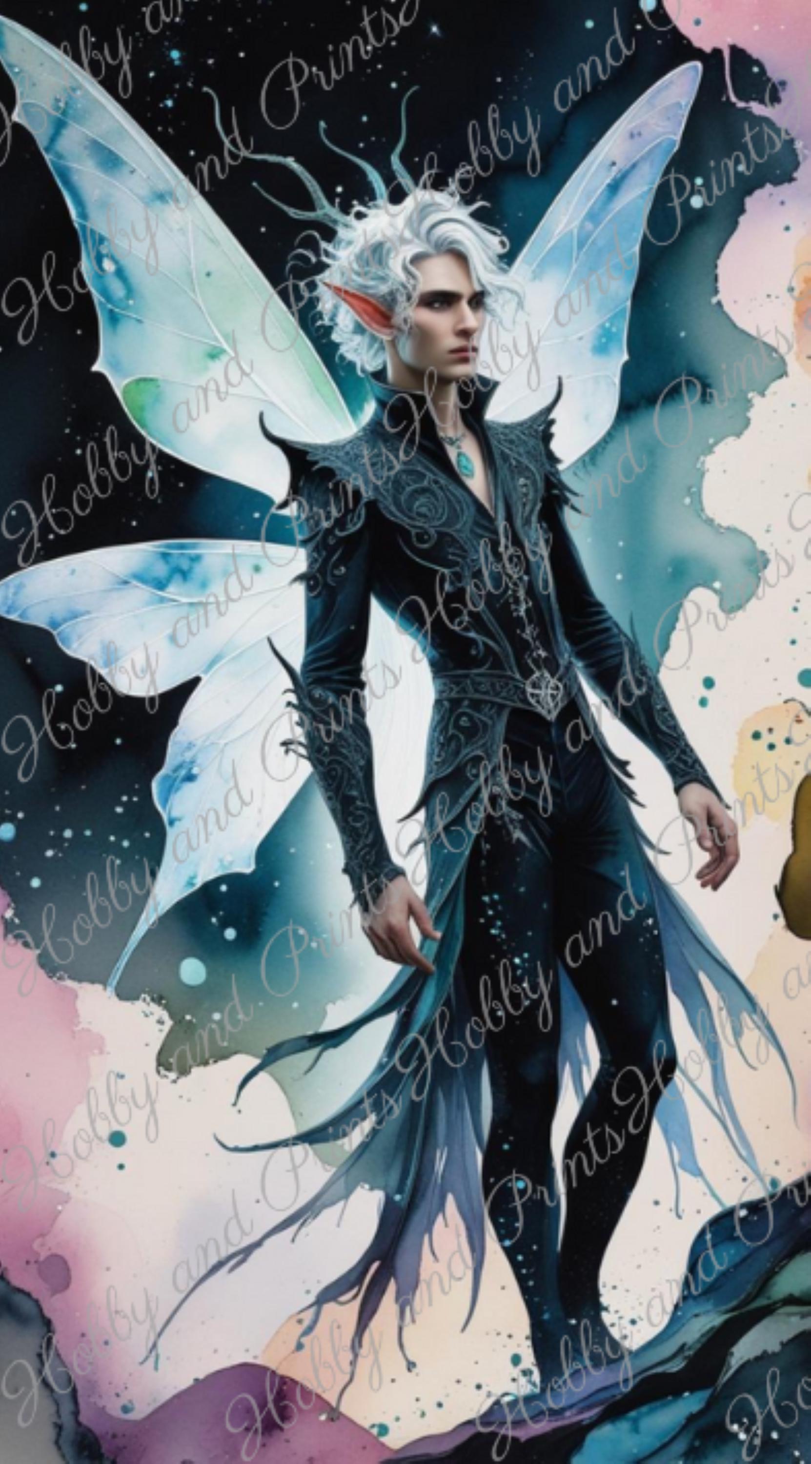 Bring the magic of fantasy to life with this high-quality diamond painting "White Elf Prince." The striking motif depicts a majestic elf with snow-white hair, elaborate black clothing, and large, glowing fairy wings – a true masterpiece for fantasy lovers.