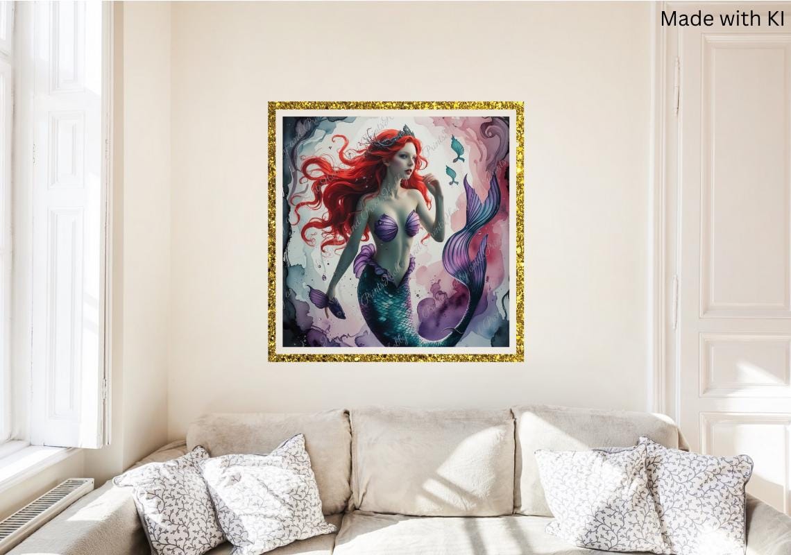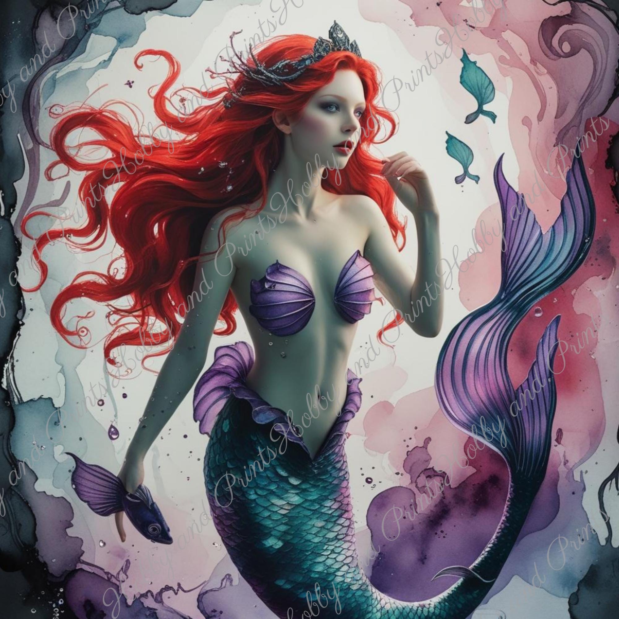 Immerse yourself in a magical world with this exclusive diamond painting mermaid with fairydust stones. The colorful motif depicts an elegant mermaid with flowing red hair and a shimmering purple-green fish fin β a true eye-catcher for fantasy and sea lovers.