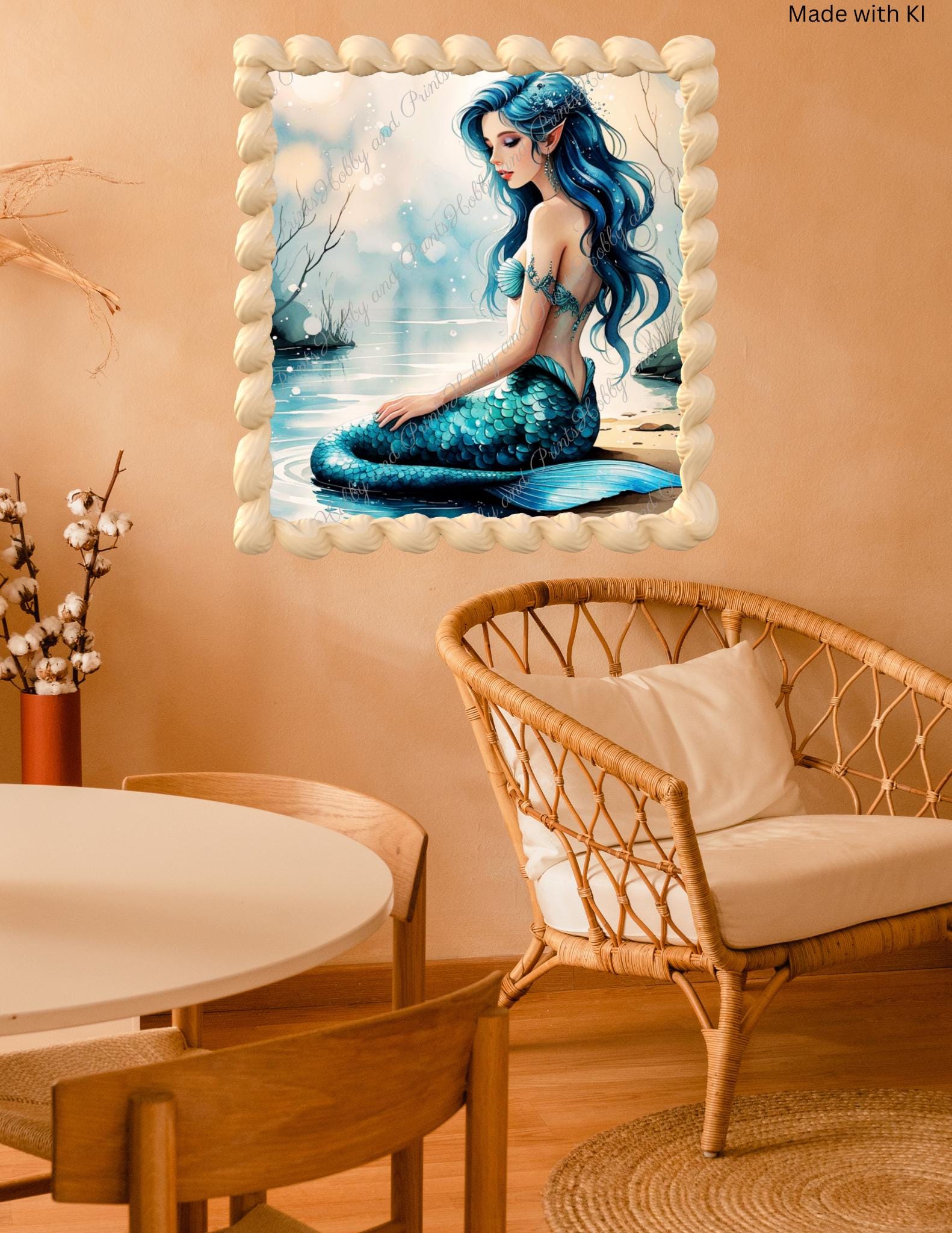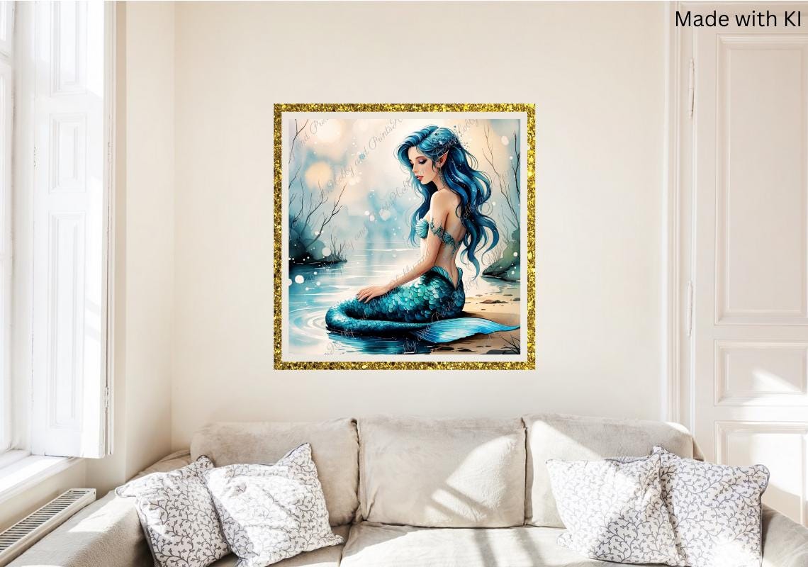 Bring a magical glow to your home with this high-quality diamond painting "Mermaid by the Water." This detailed motif depicts a dreamy mermaid in a tranquil evening setting.