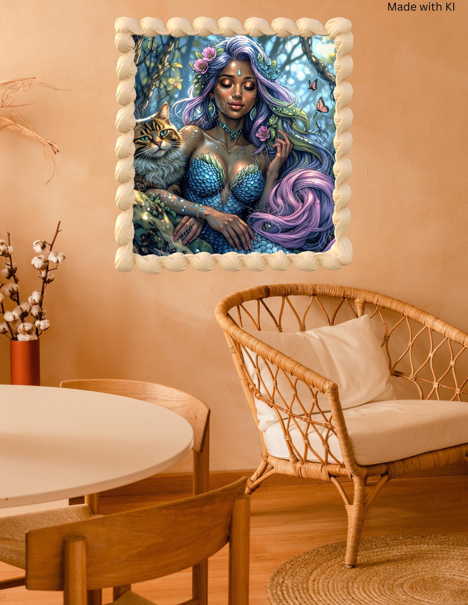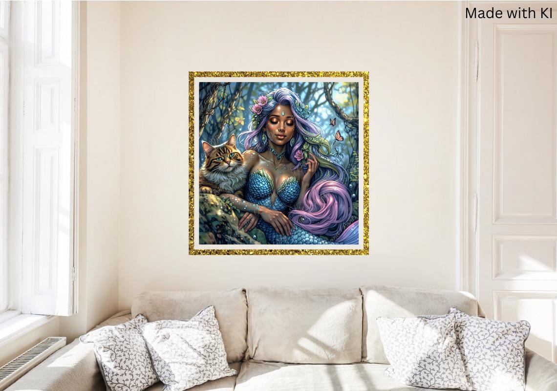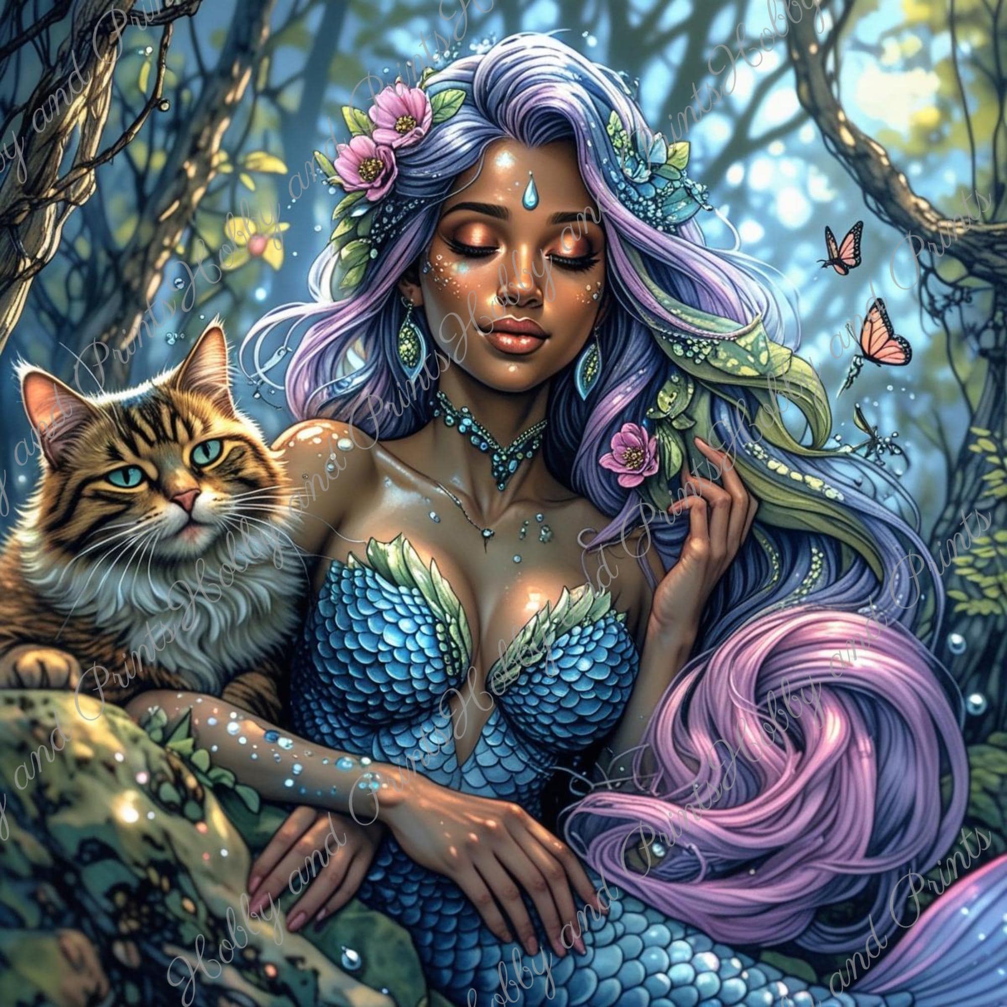 This high-quality diamond painting "Mermaid with Cat" will transport you to a dreamy underwater fantasy world. An elegant mermaid with luscious hair, her faithful cat, and surrounded by butterflies β an absolute highlight for fantasy lovers and DIY enthusiasts.