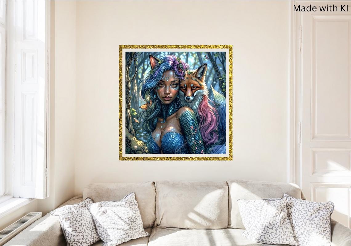 This high-quality diamond painting "Forest Nymph with Fox" depicts a mysterious mythical creature with shimmering scales, an intense gaze, and her faithful companion β a fox with bright red fur. The combination of natural elegance and fantasy elements makes this work of art a true highlight.