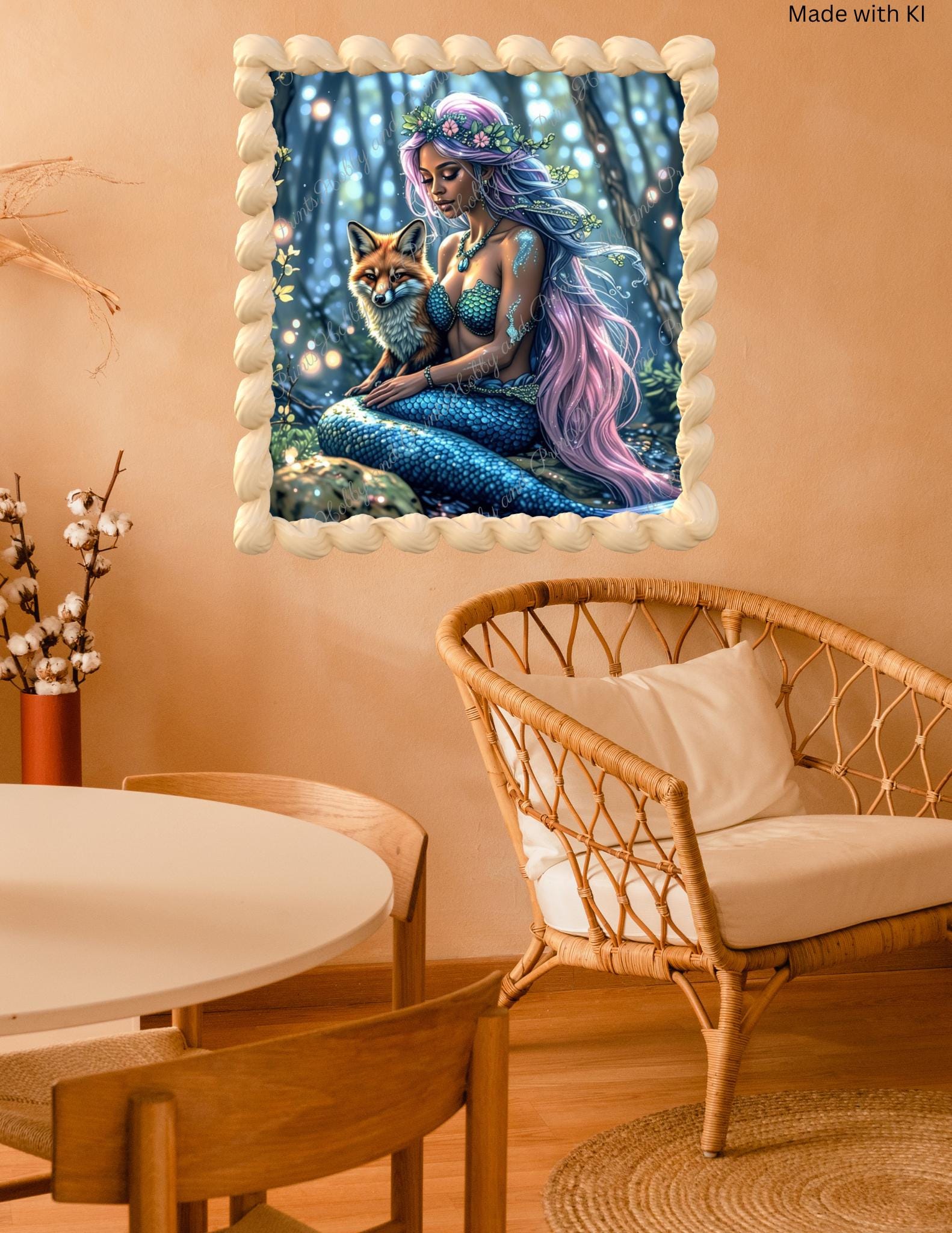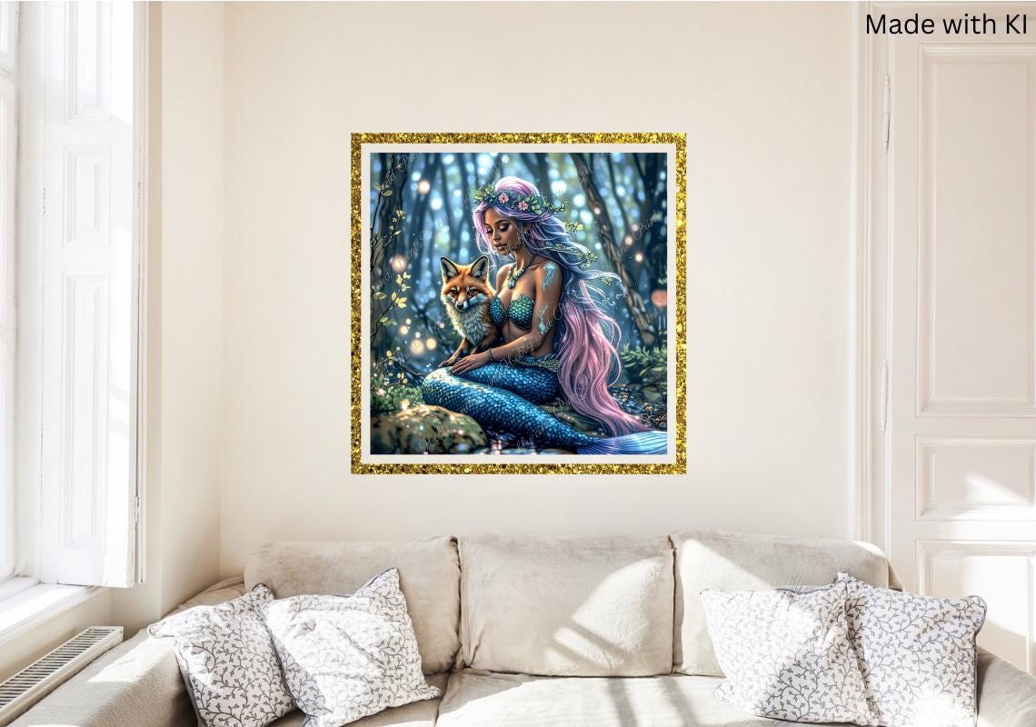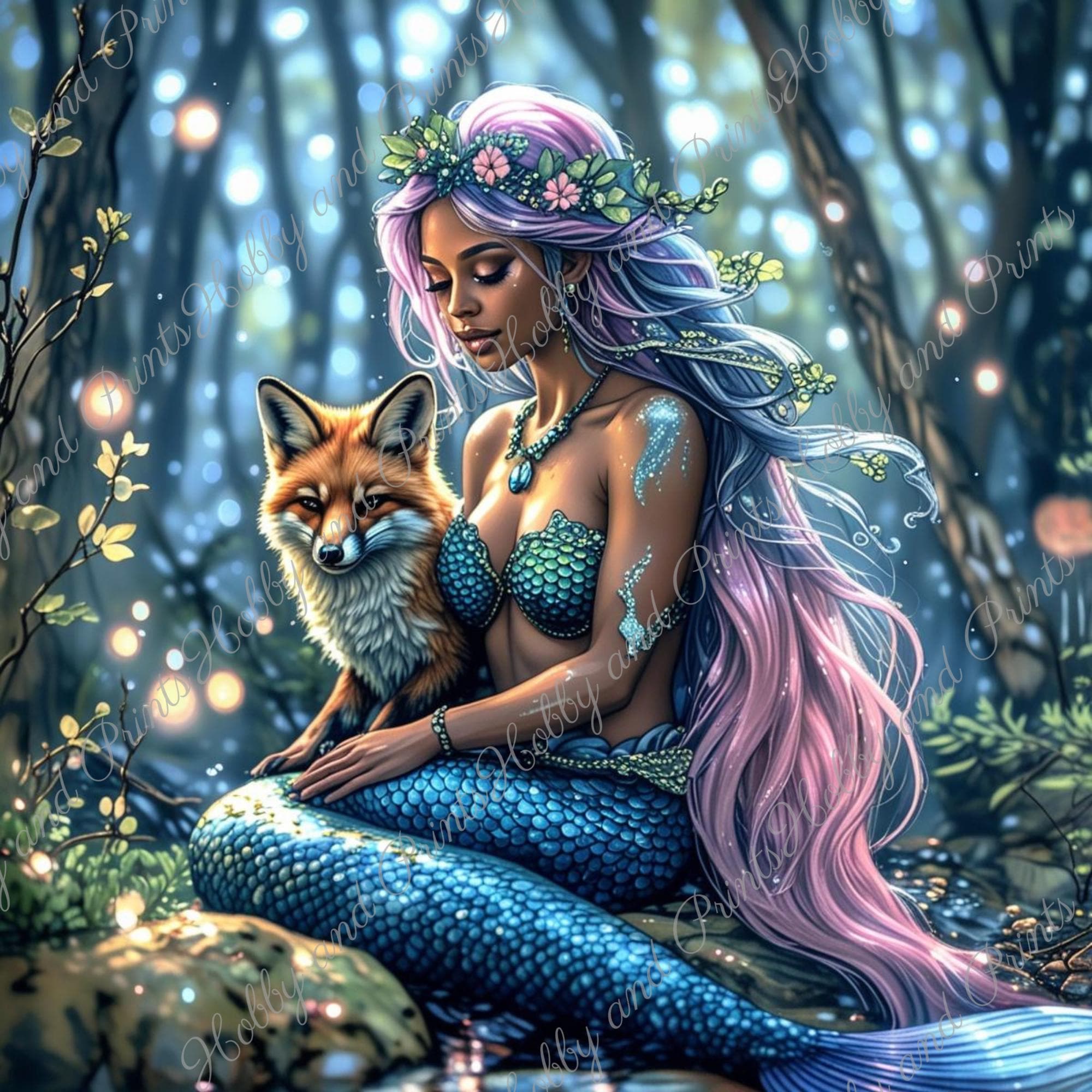 This exclusive "Mermaid with Fox" diamond painting brings an enchanting scene straight to your home: a beautiful mermaid with long, flowing hair and a loyal fox β both united in a magical moment in a mystical forest.