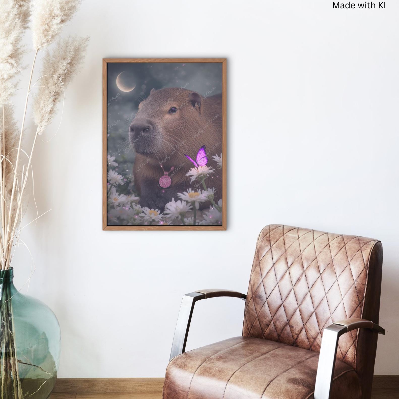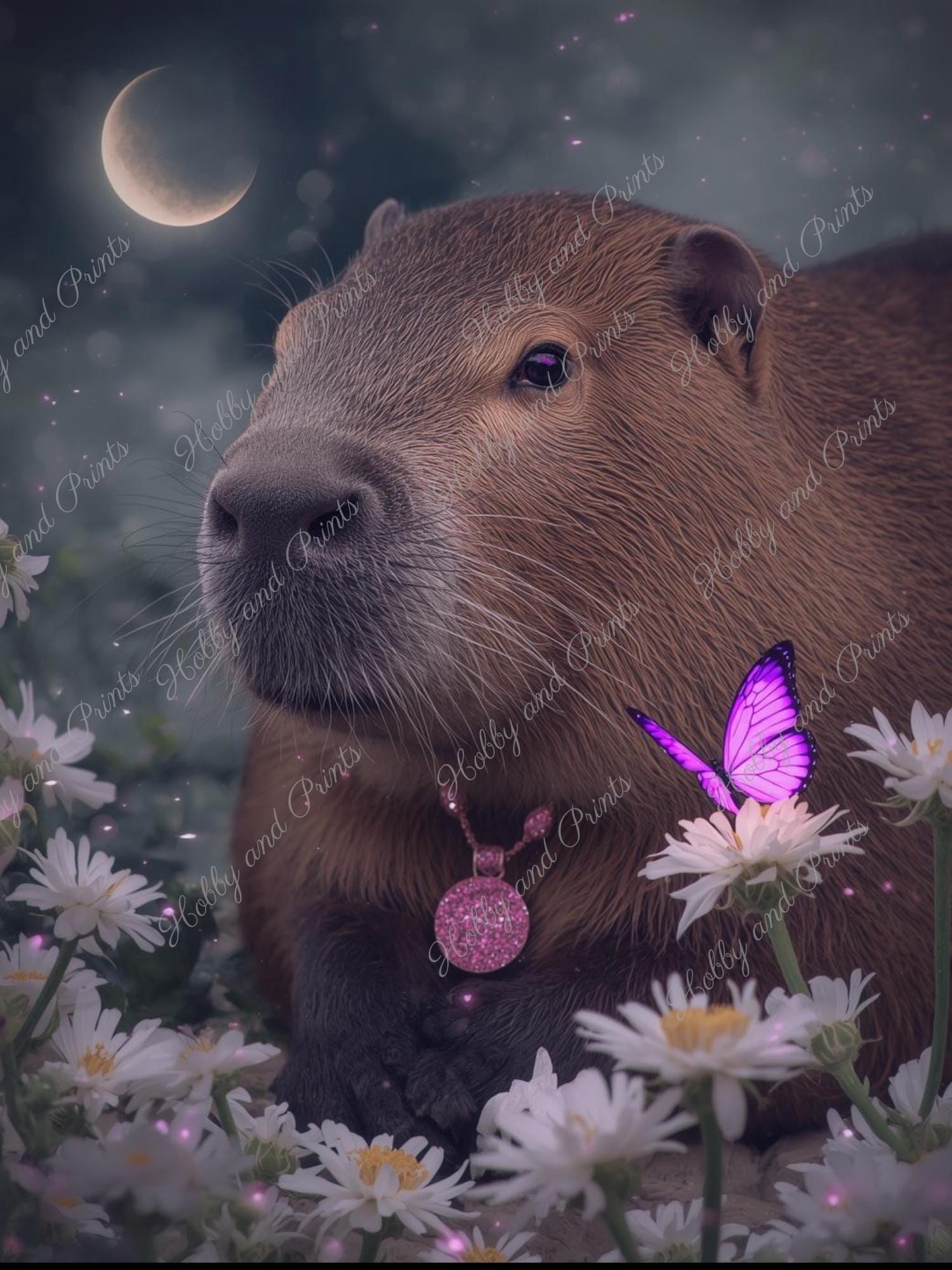 Capybara with Moonlight & Butterfly β Diamond Painting