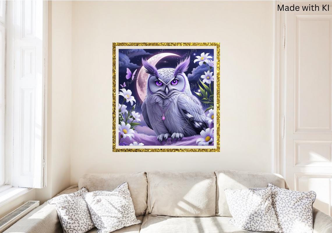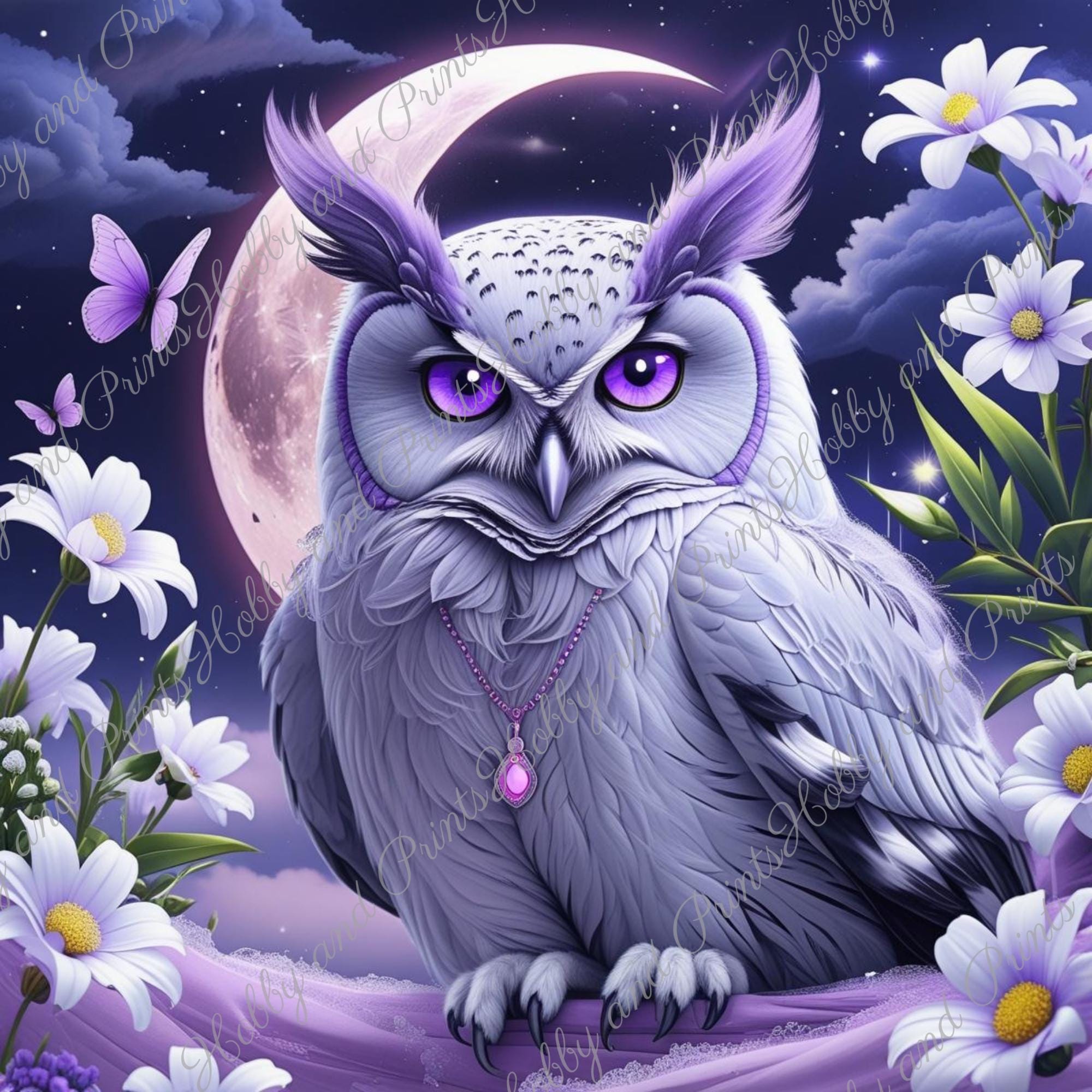 Immerse yourself in the magical world of creativity with this exclusive diamond painting set "Mystical Owl in the Moonlight." The motif features a captivating purple owl with shining eyes, surrounded by white flowers, butterflies, and a glowing crescent moonβa real eye-catcher for any room!