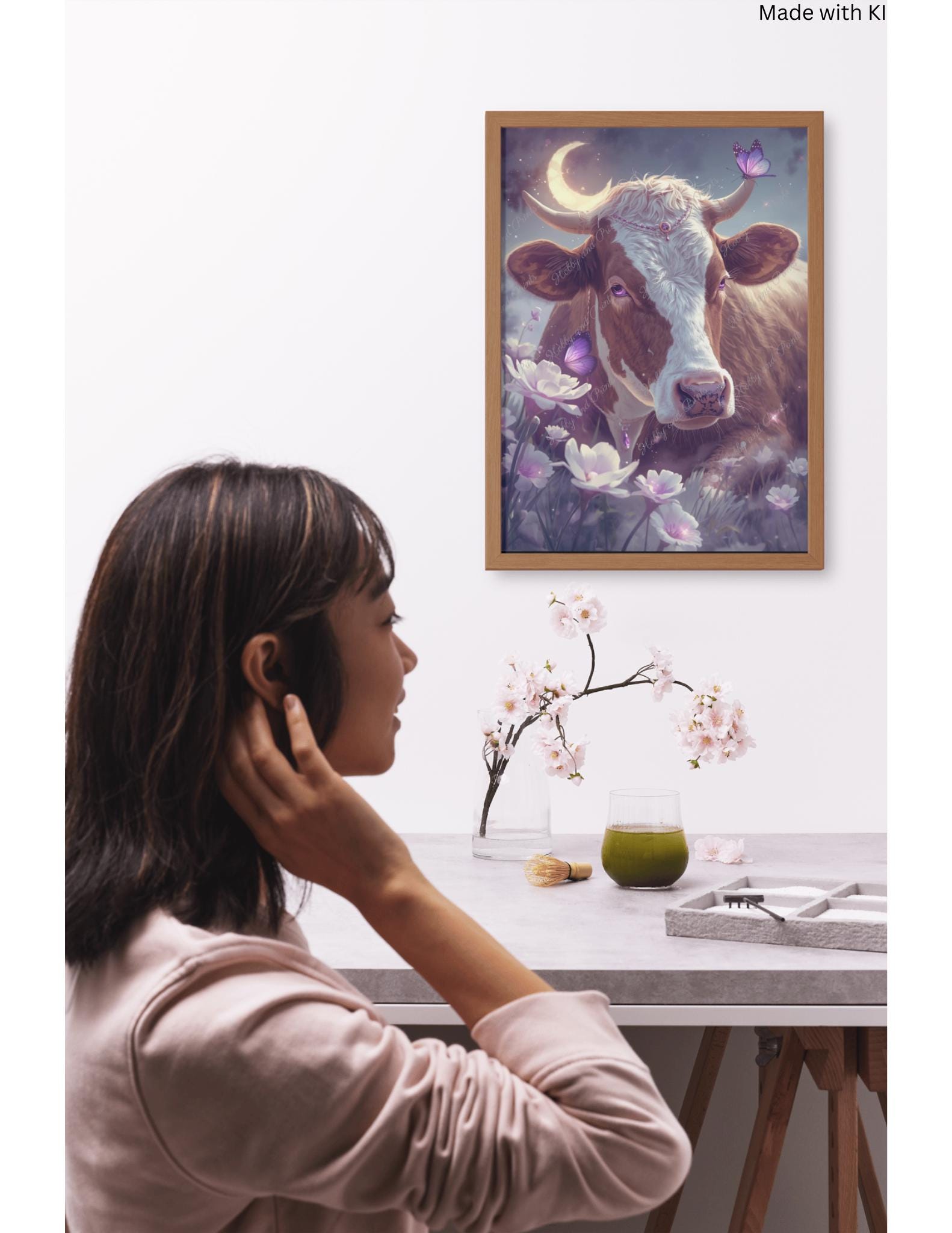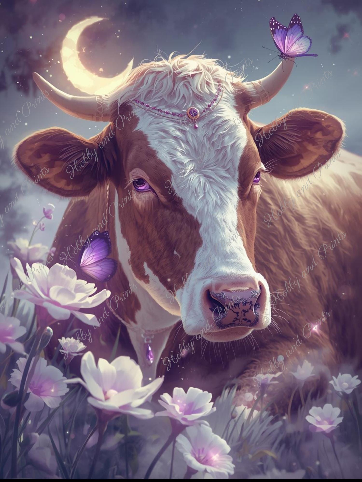 🧚Diamond Painting Cow Fantasy Night | Magical Cow with Moon & Flowers | DIY 5D Glitter Picture | Special Stones | Round or Square Stones | Canvas Options