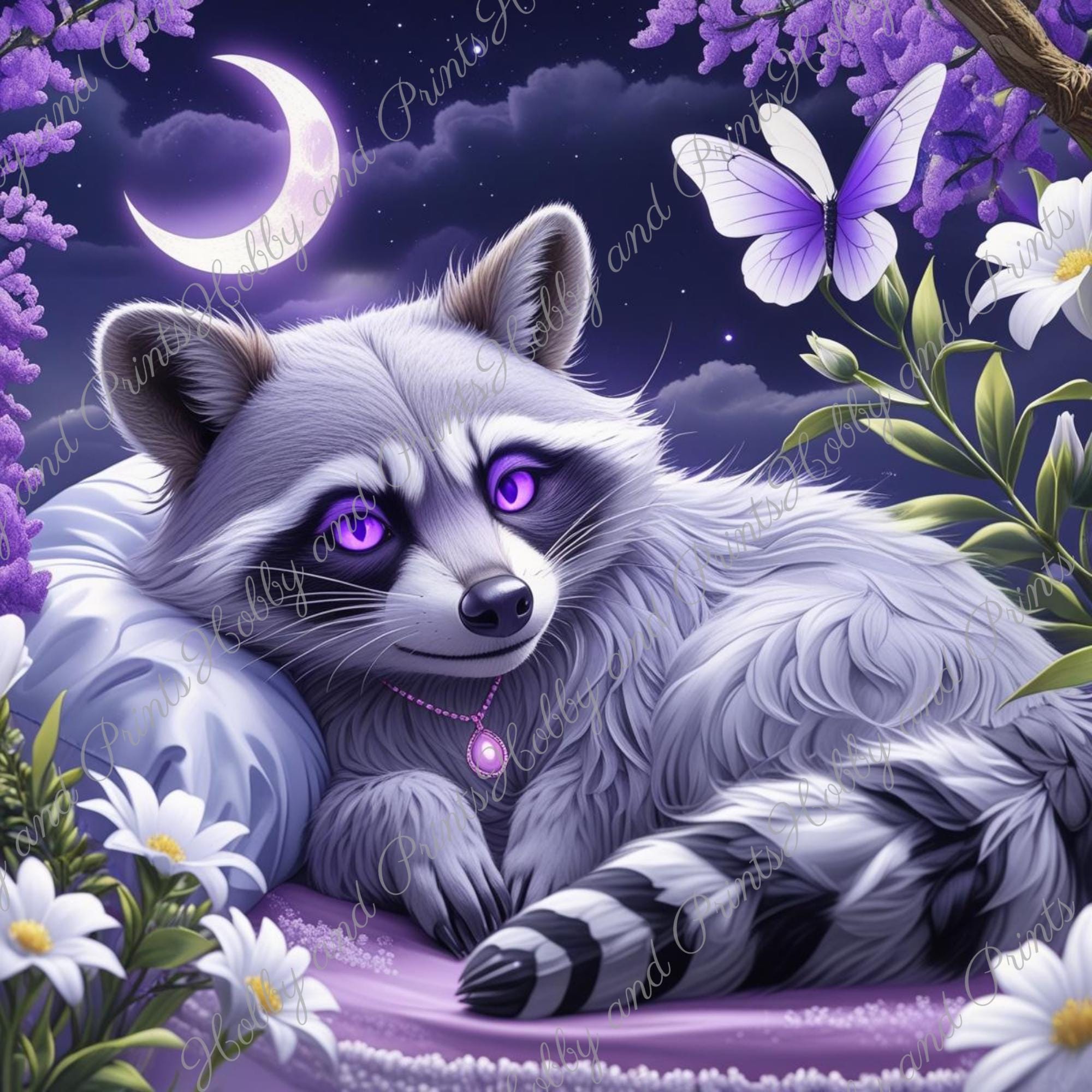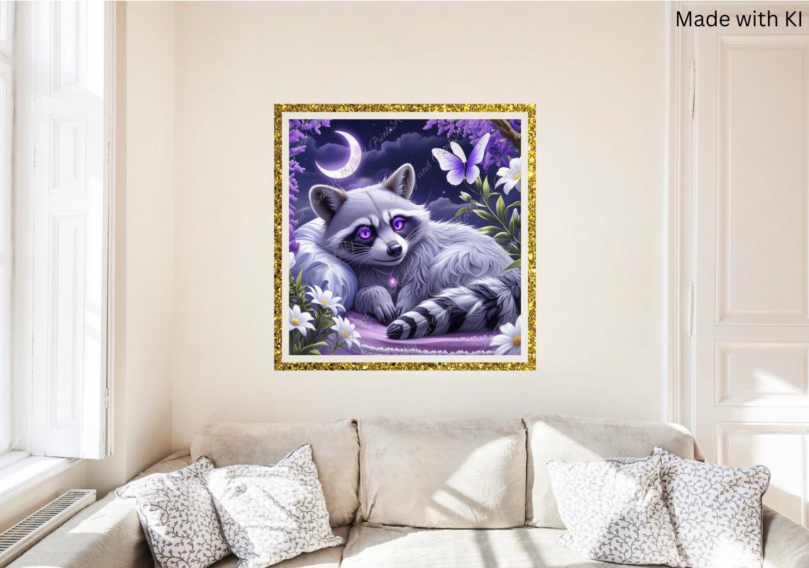 π§ββοΈ 5D DIY Diamond Painting Mystical racoon with Moon β Purple Fantasy Motif | Sparkling Fantasy Wall Art | DIY Diamond Art Mosaic | High-Quality Diamond Painting | 30x30β100x100 cm (11.81x11.81β39.37x39.37 in) | Canvas Options | Round & Square