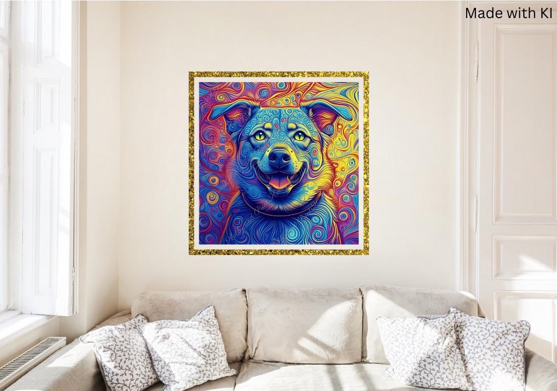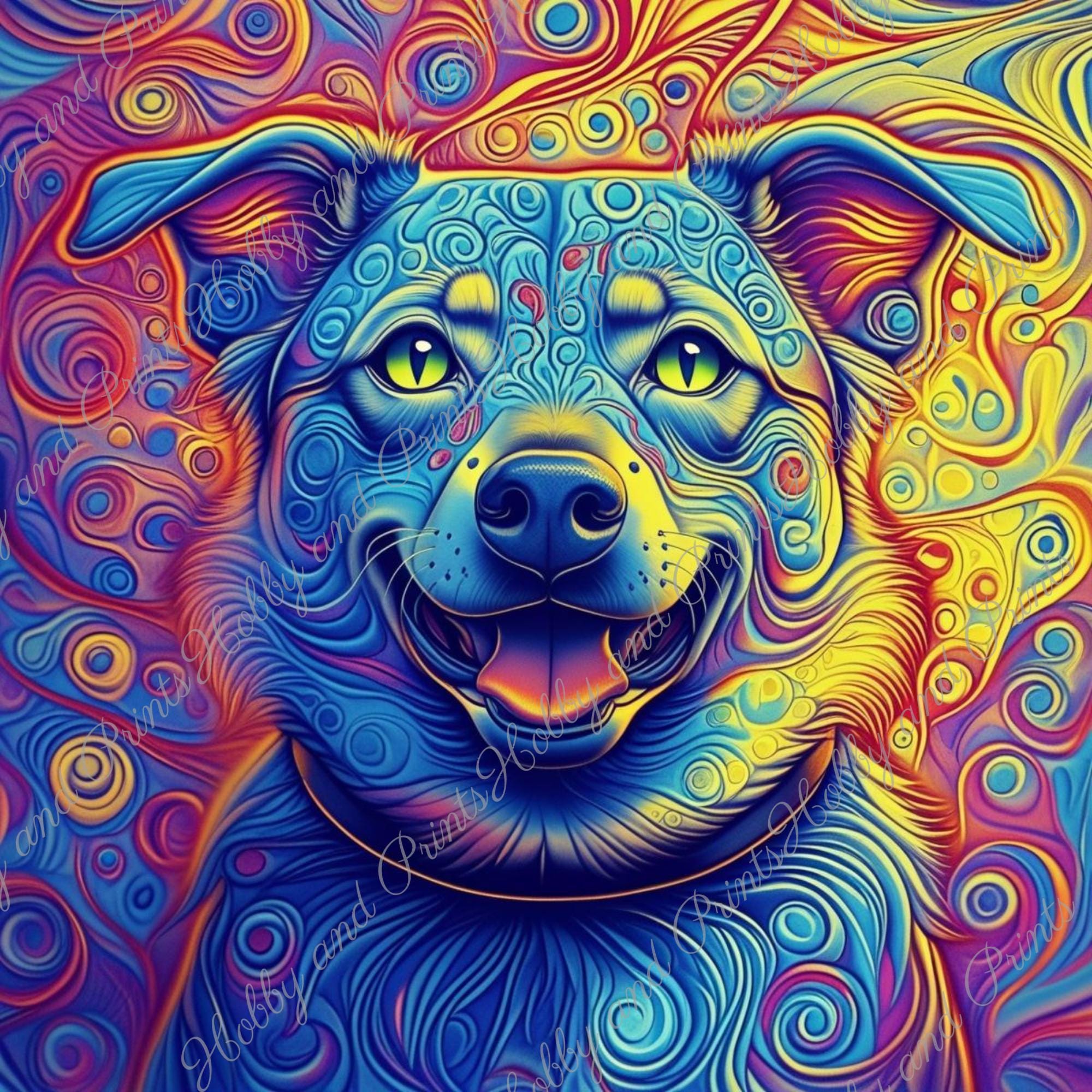 Transform your wall into a true explosion of color with this unique "Psychedelic Dog" diamond painting!