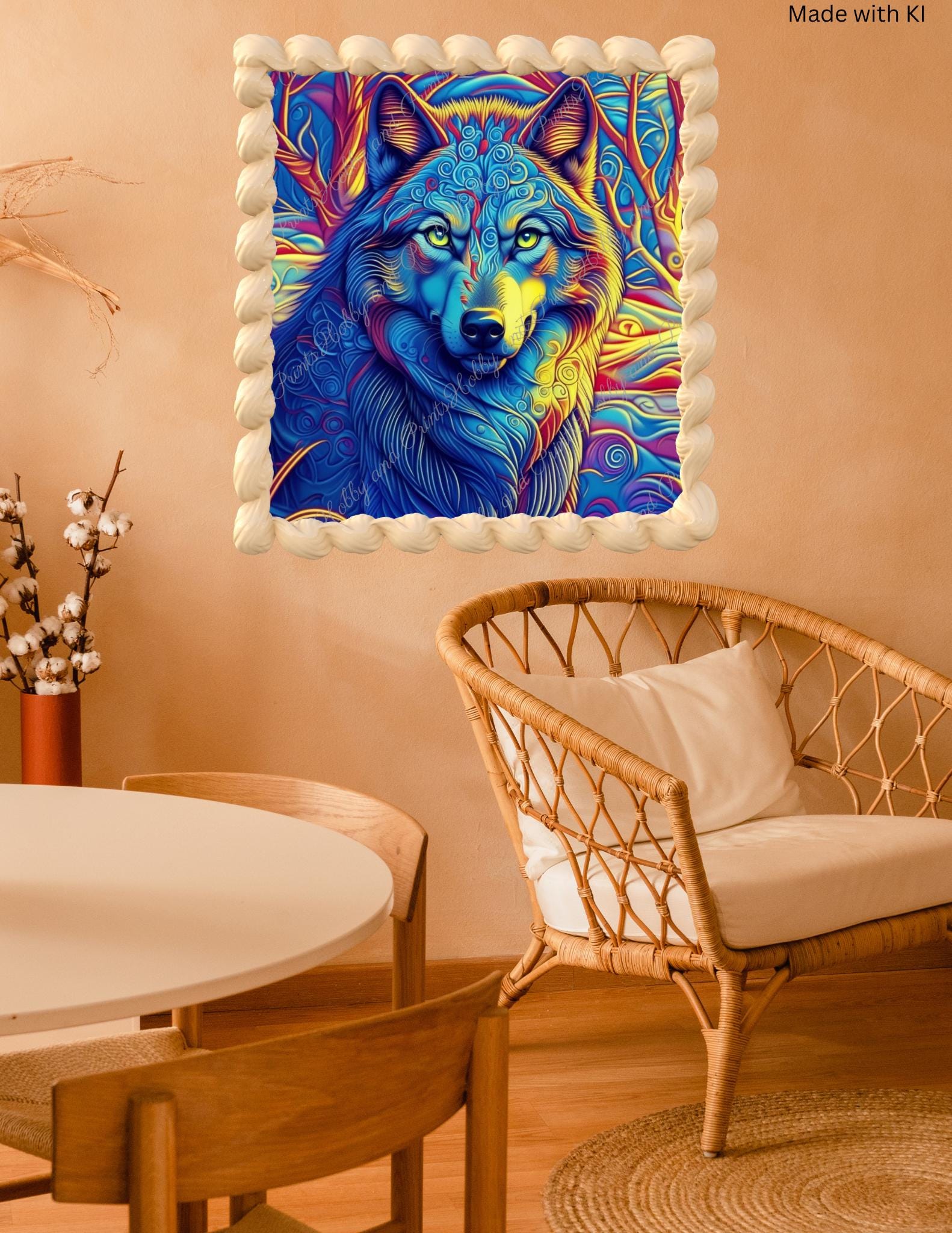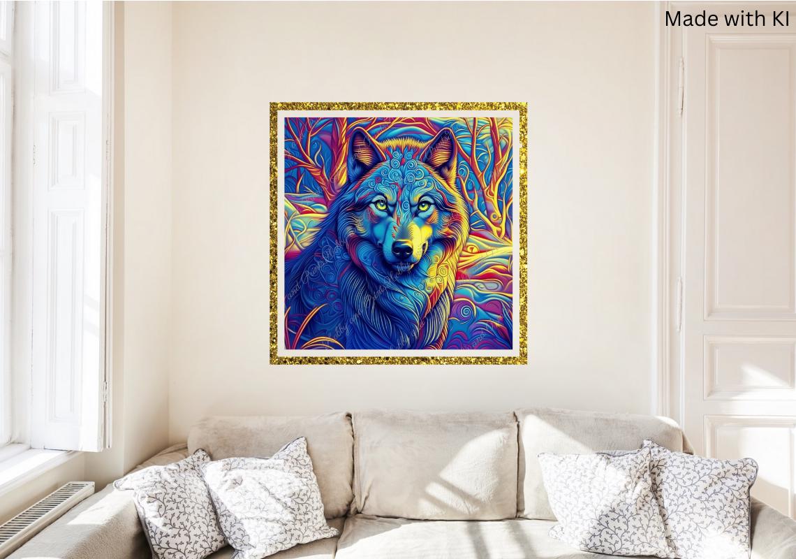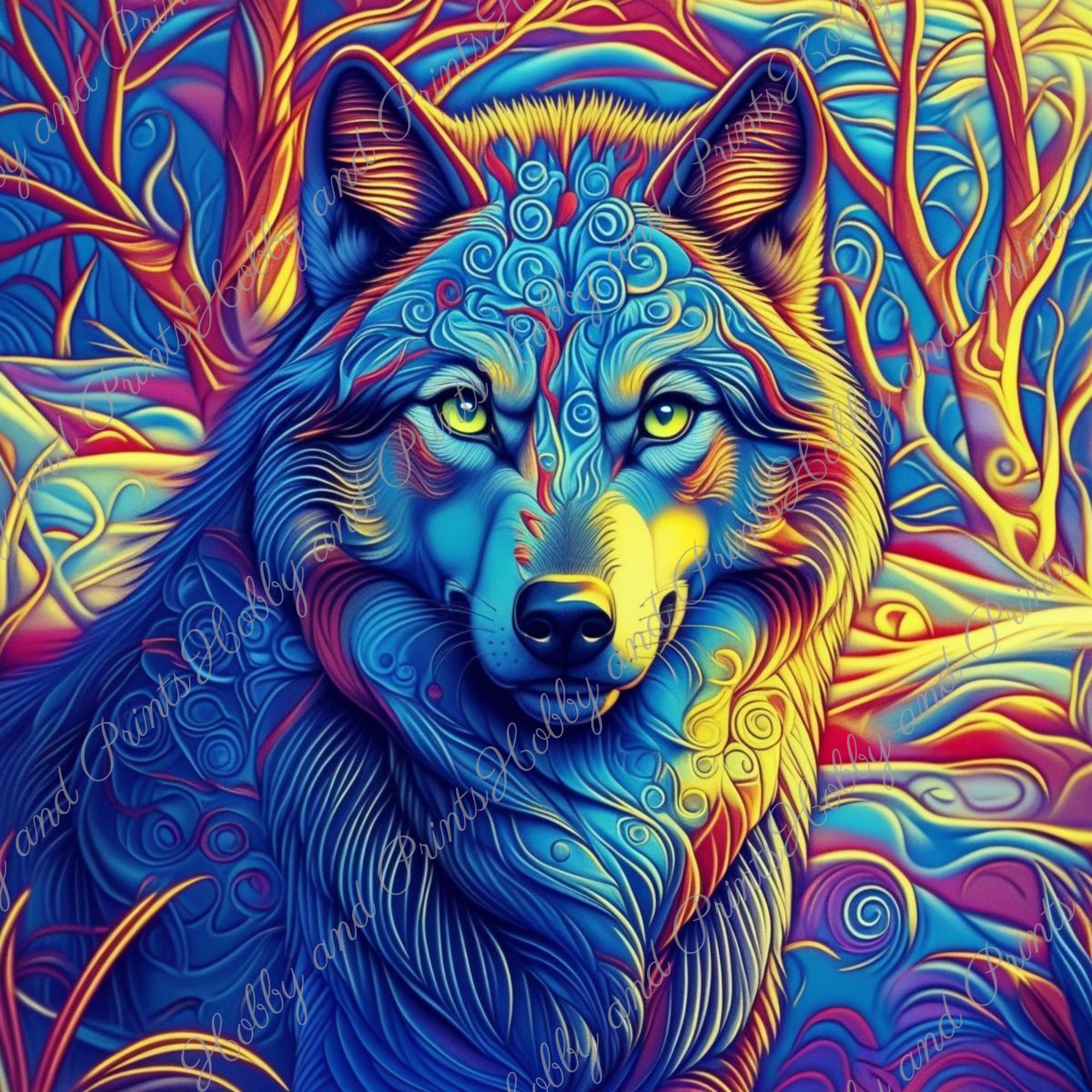 Transform your wall into a true explosion of color with this unique "Psychedelic wolf" diamond painting!