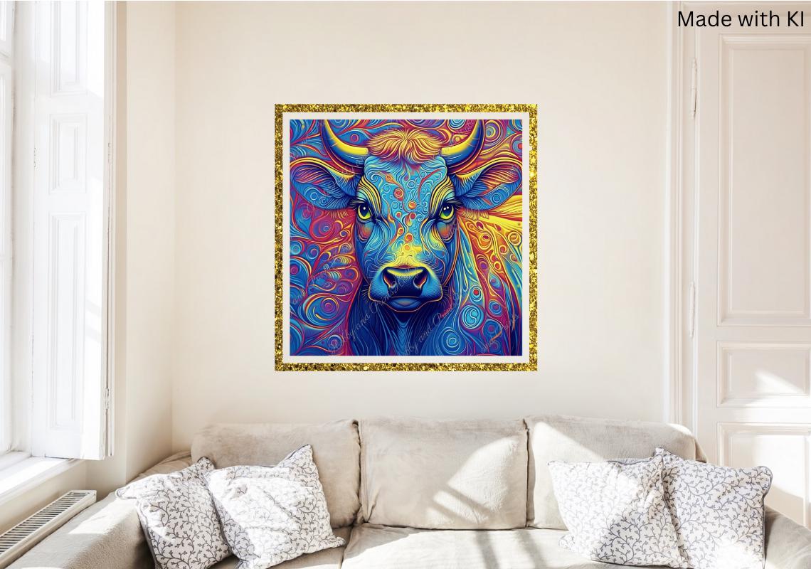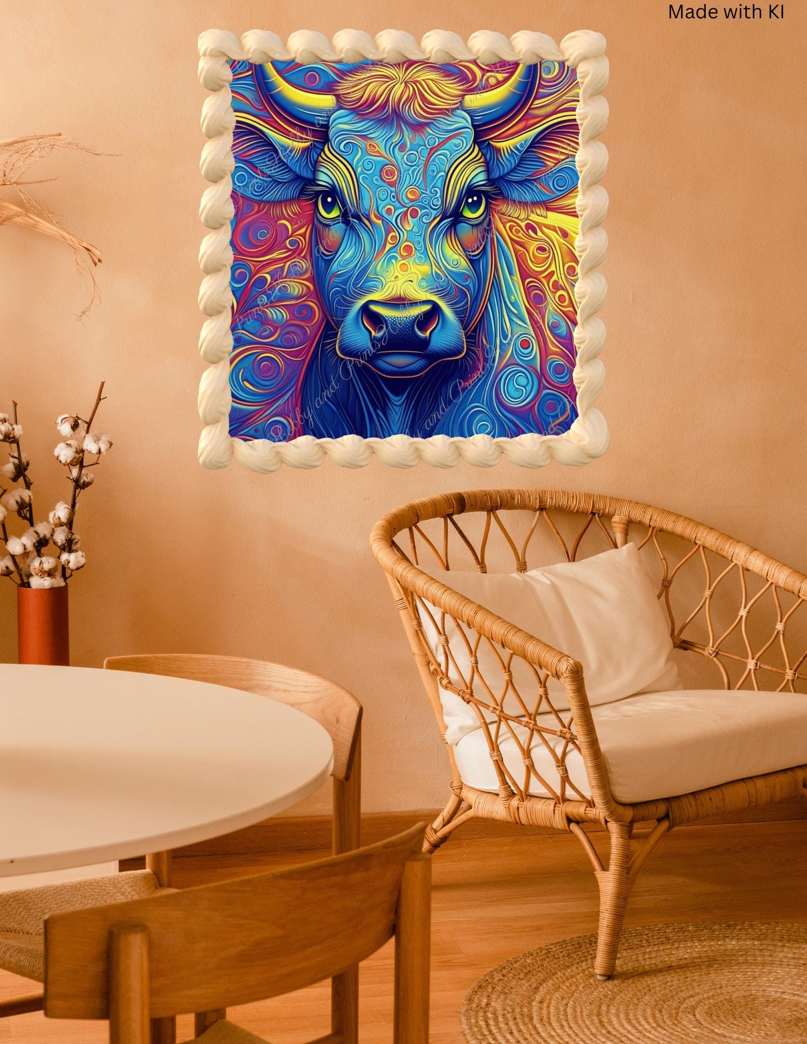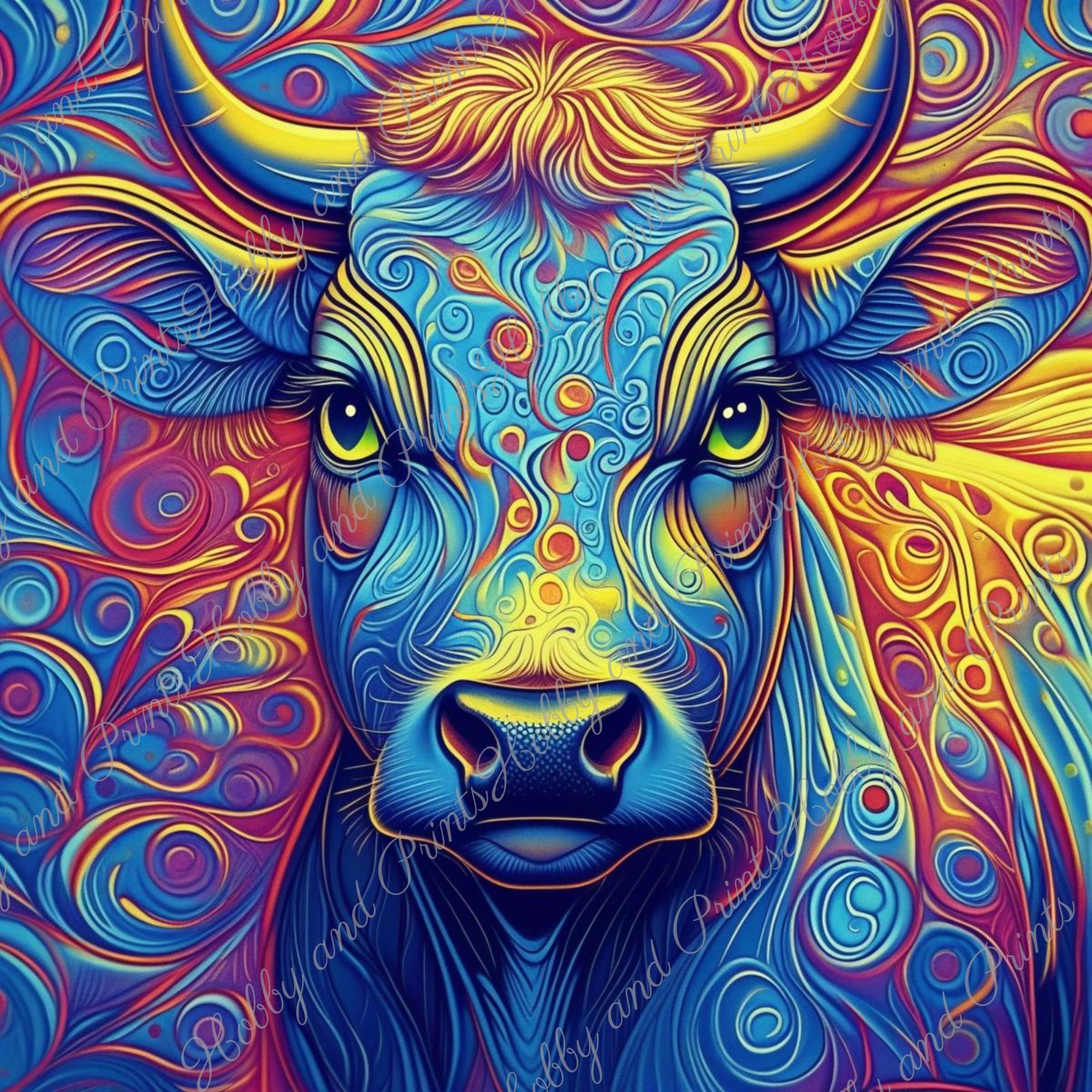 Transform your wall into a true explosion of color with this unique "Psychedelic cow" diamond painting!