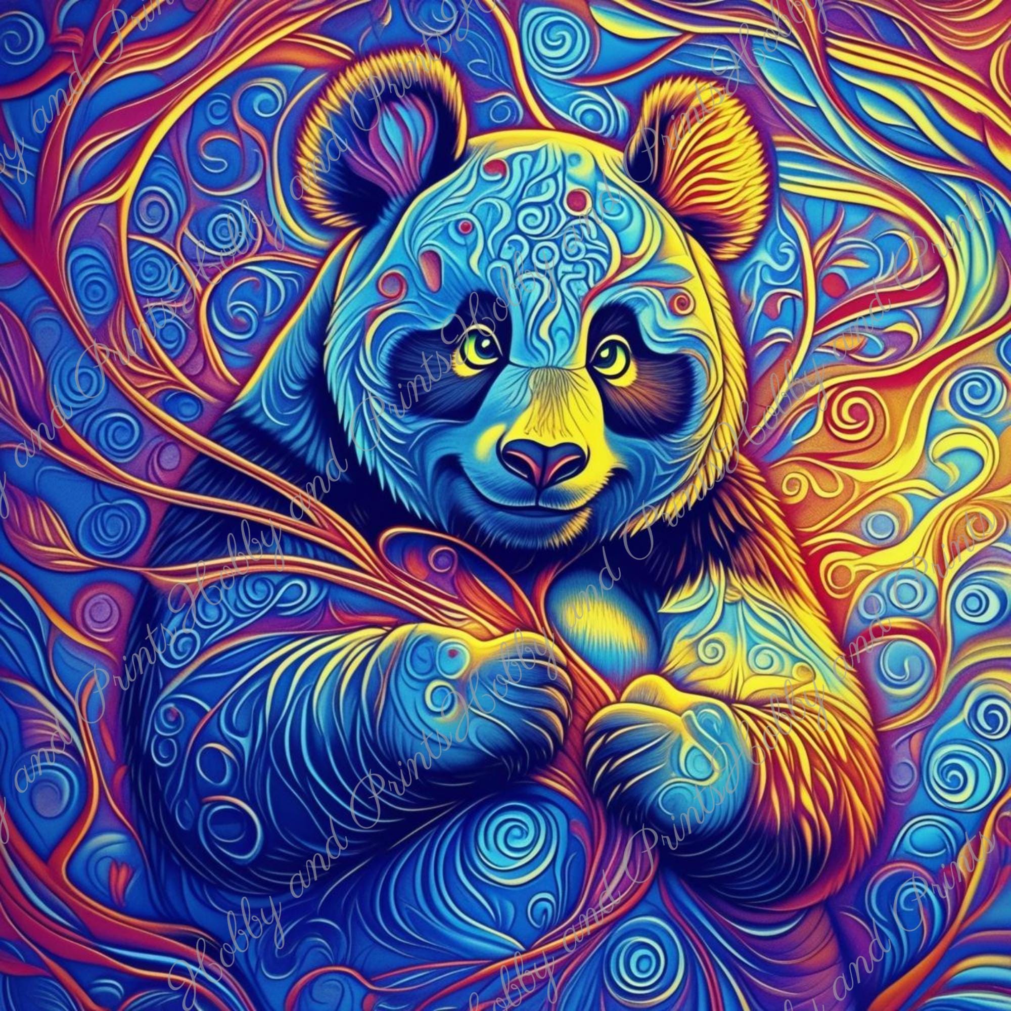 Transform your wall into a true explosion of color with this unique "Psychedelic Panda bear" diamond painting!