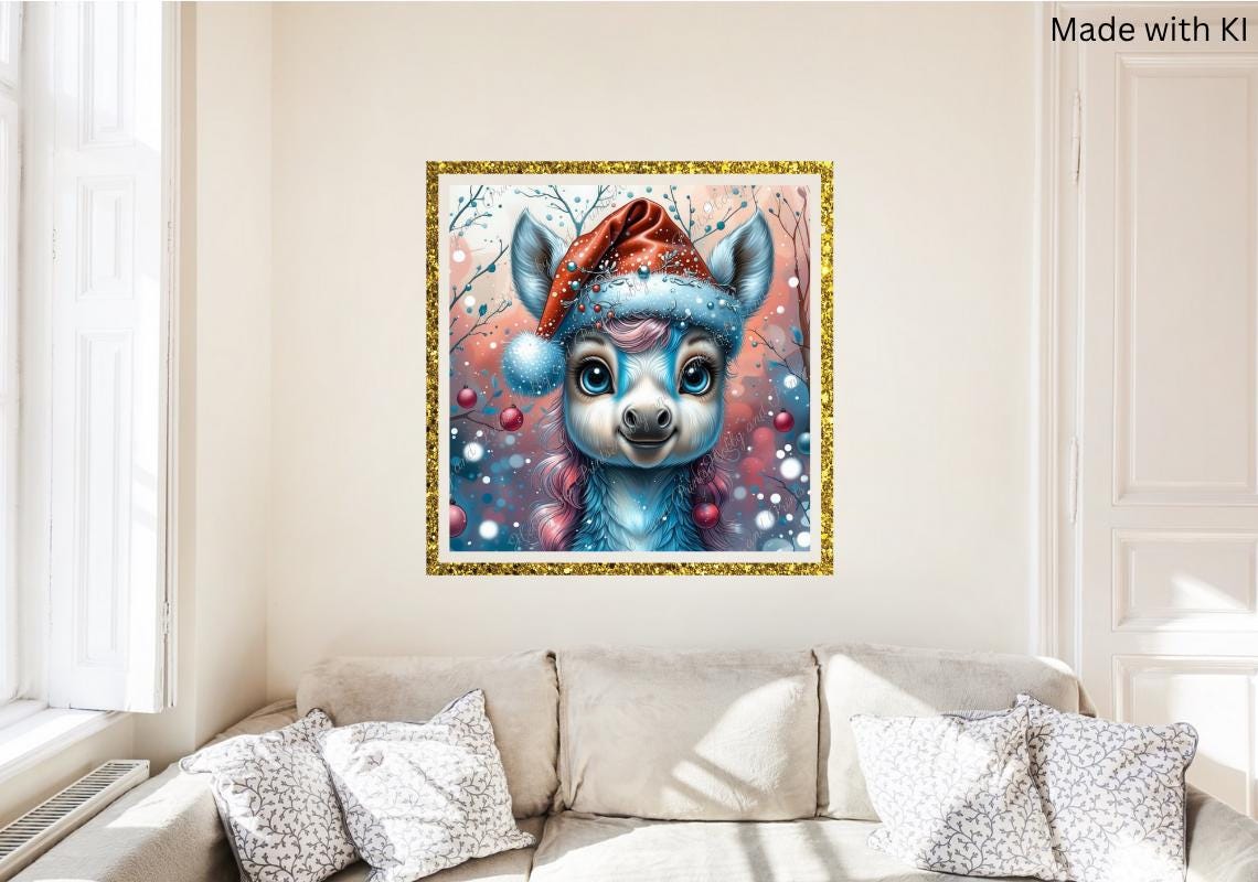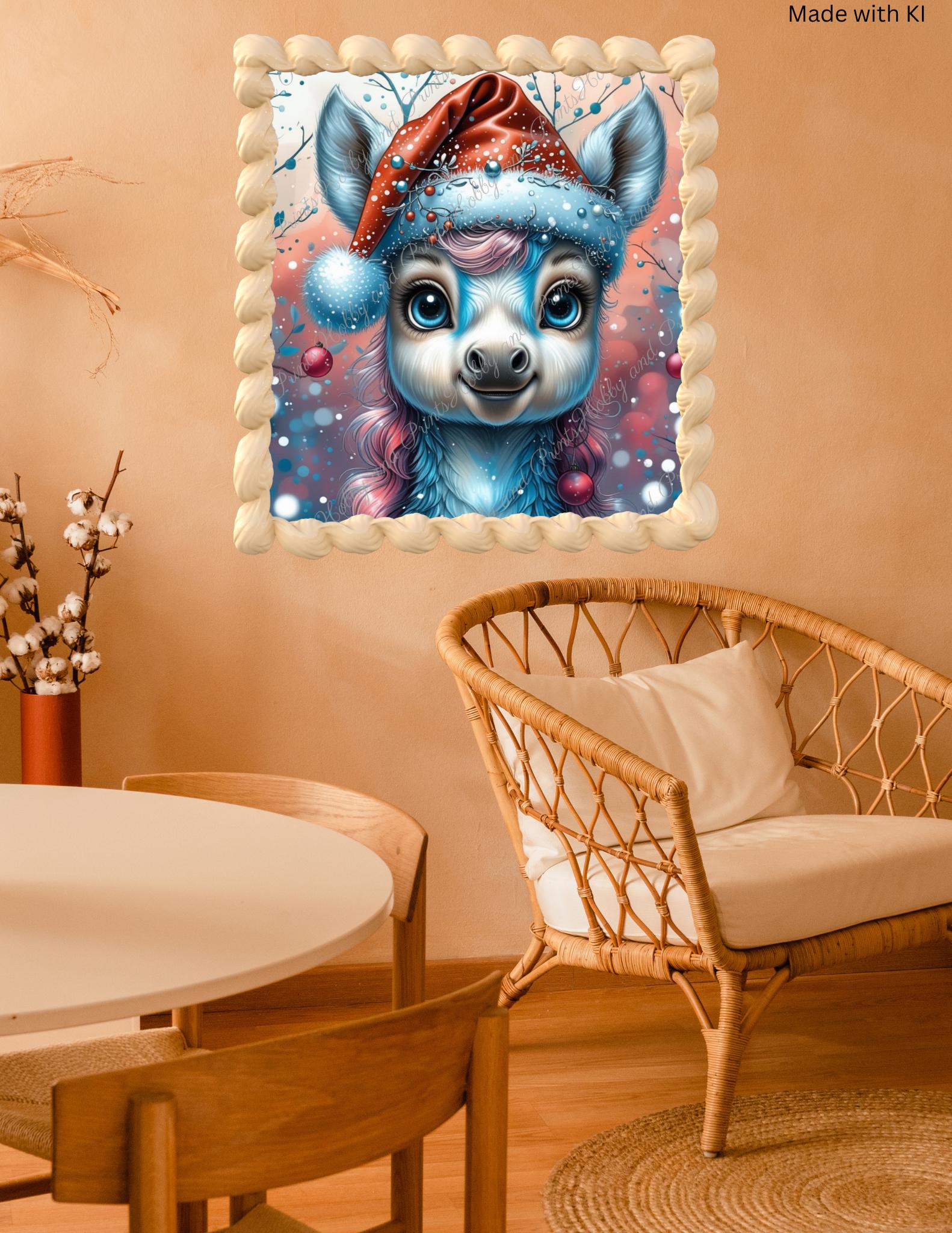 This high-quality diamond painting depicts a cheerful unicorn wearing a Santa hat β perfect for the festive season! The wintry color scheme of blue, white, and red brings the motif to life and creates a cozy Christmas atmosphere.