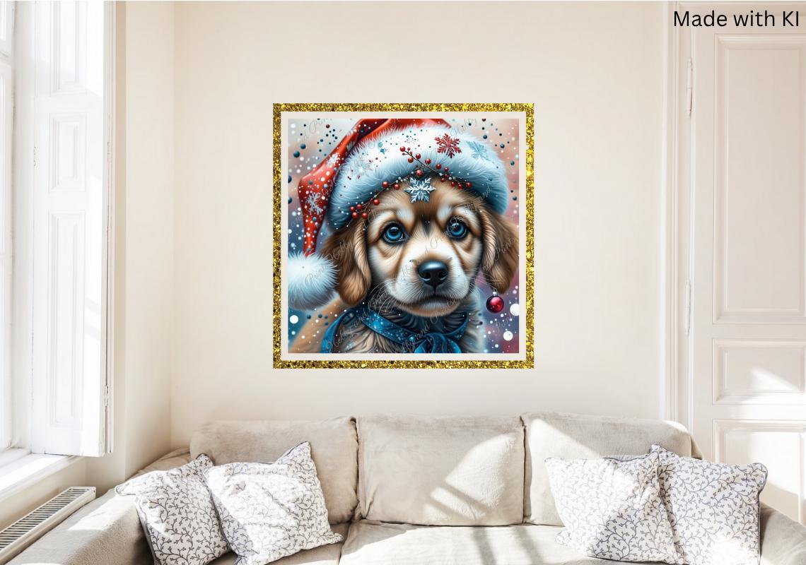 β¨ Diamond Painting dog Christmas | 5D DIY animal motif | Special Stones | Canvas Options | Round or Square Stones