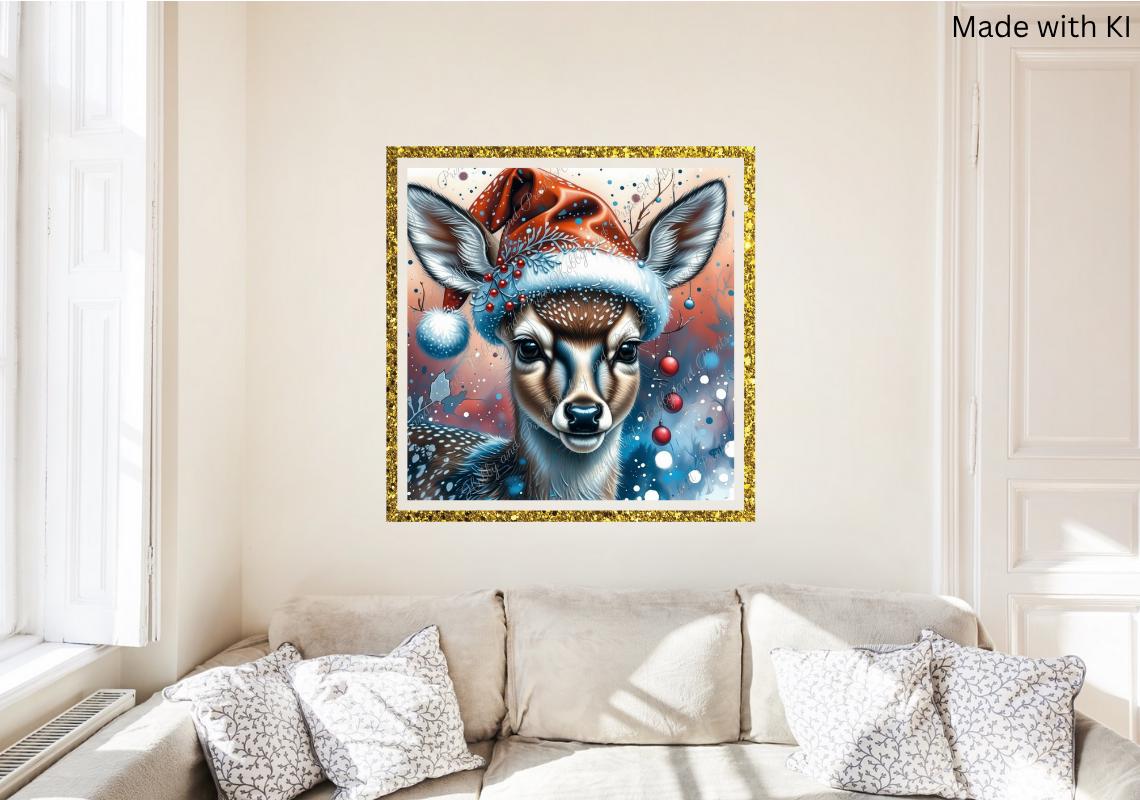This high-quality diamond painting depicts a cheerful deer wearing a Santa hat β perfect for the festive season! The wintry color scheme of blue, white, and red brings the motif to life and creates a cozy Christmas atmosphere.