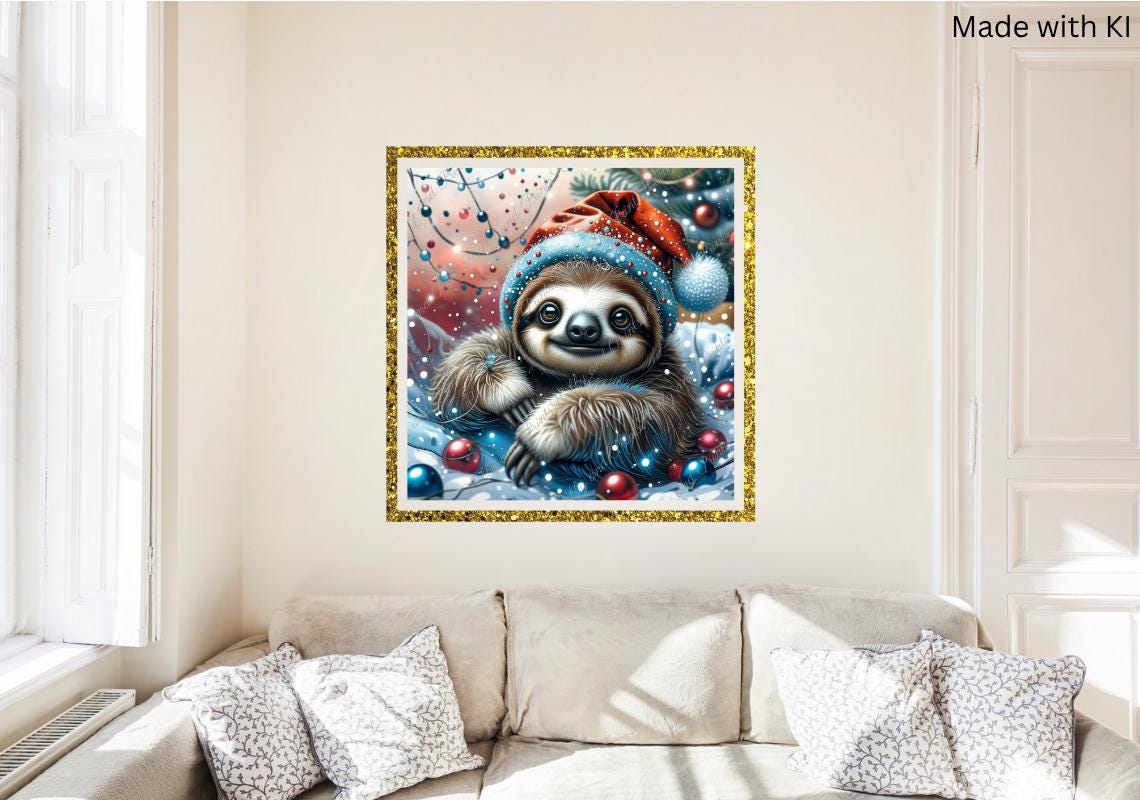 β¨ Diamond Painting sloth Christmas | 5D DIY animal motif | Special Stones | Canvas Options | Round or Square Stones