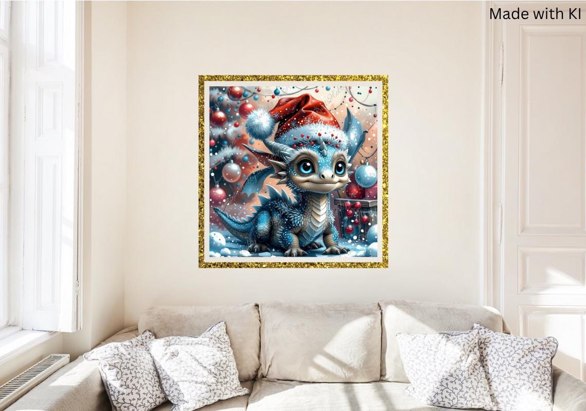 This high-quality diamond painting depicts a cheerful dragon wearing a Santa hat β perfect for the festive season! The wintry color scheme of blue, white, and red brings the motif to life and creates a cozy Christmas atmosphere.