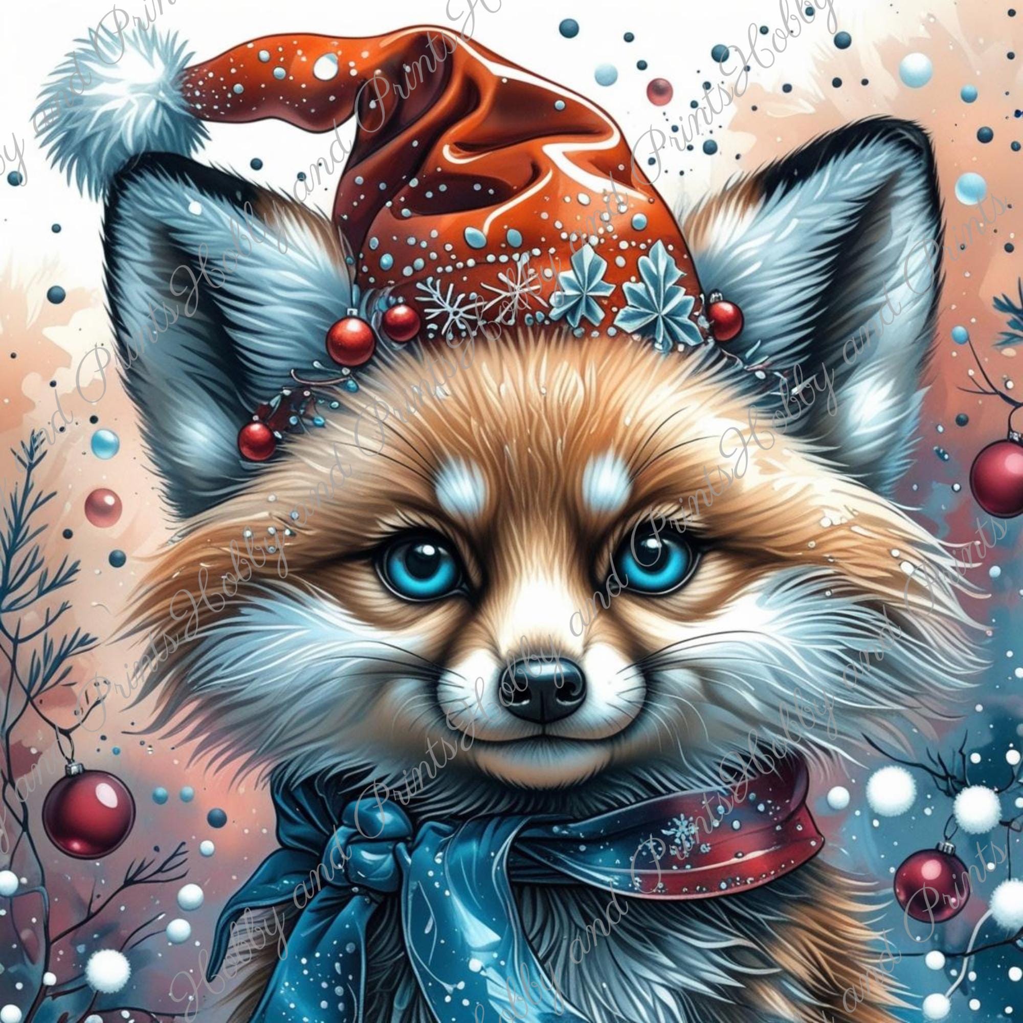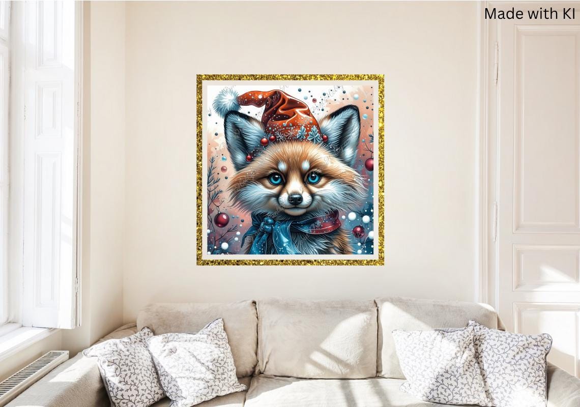 πΎ Christmas fox with Red Hat β Magical Winter Wonderland as a Diamond Painting! π